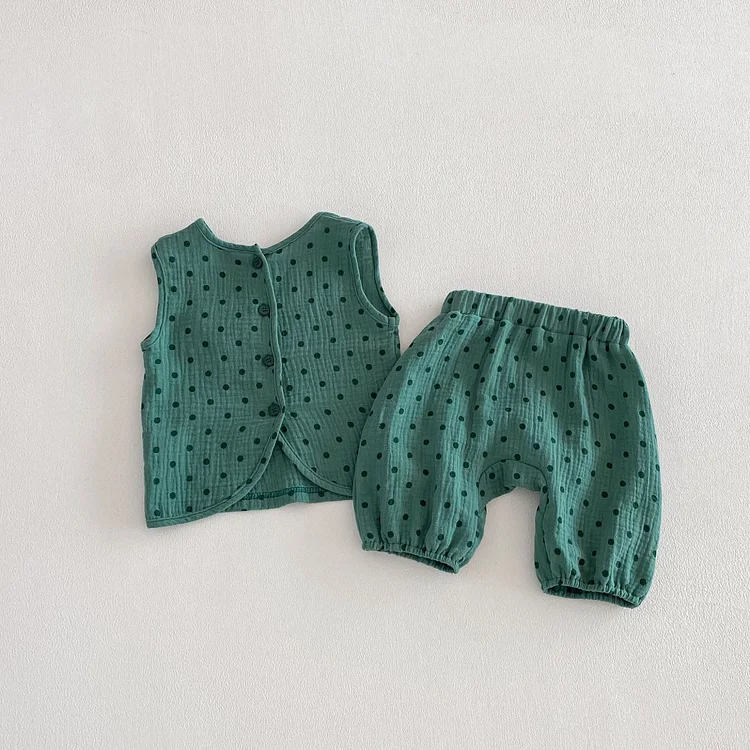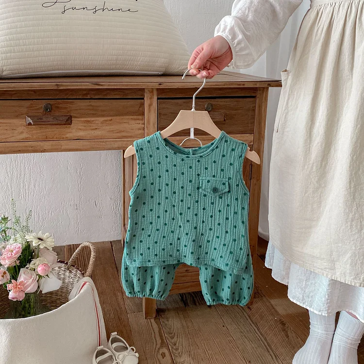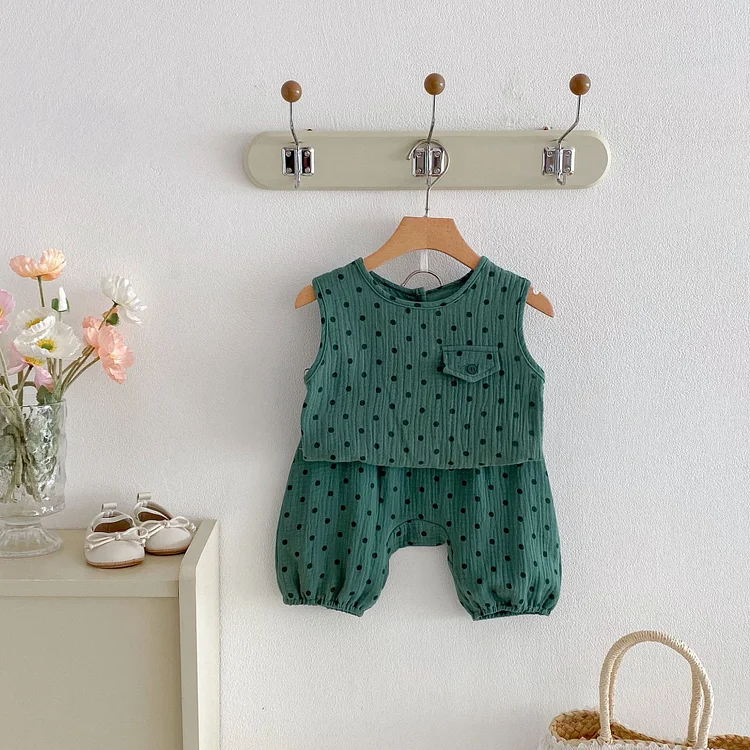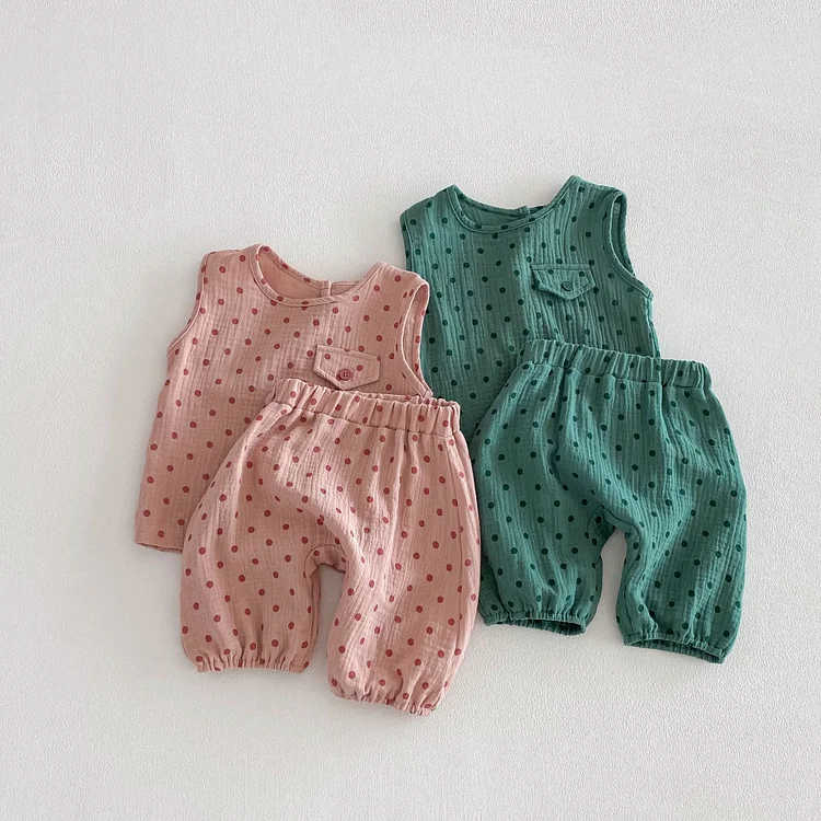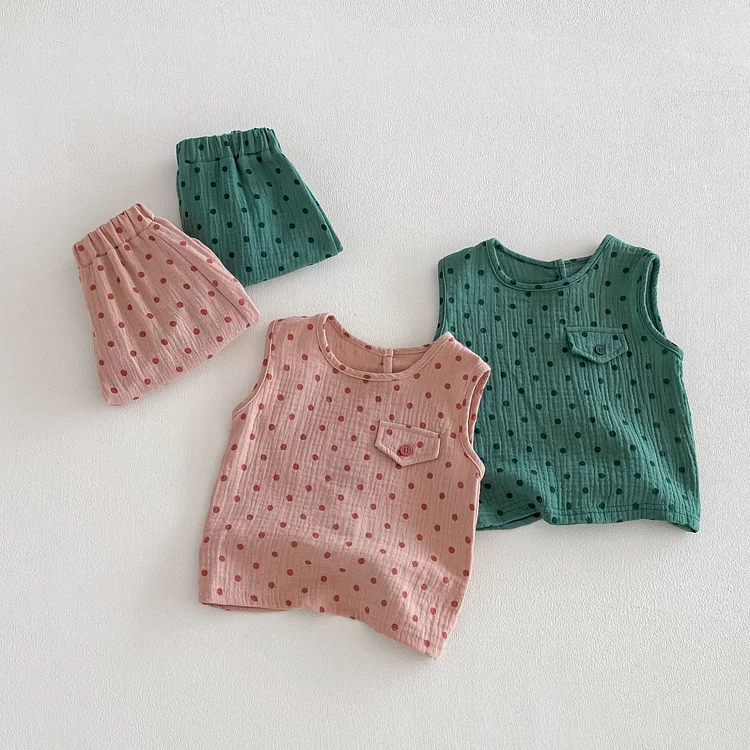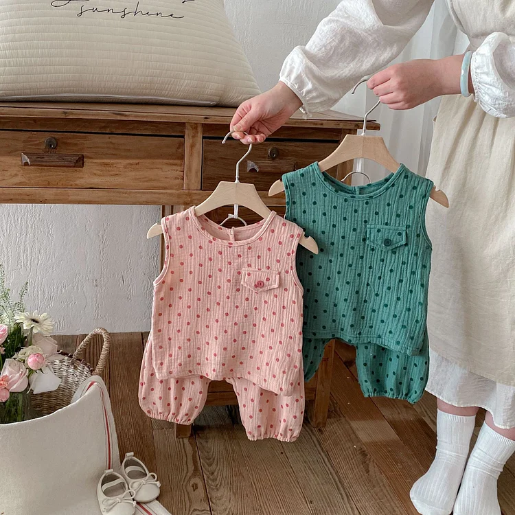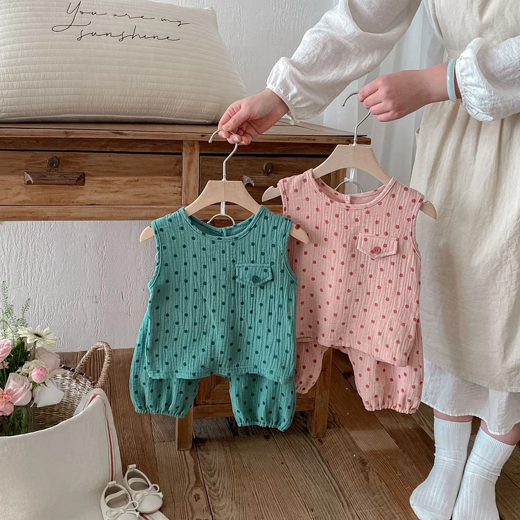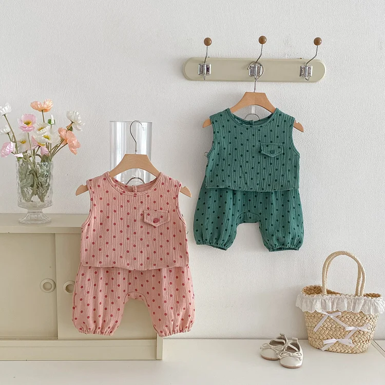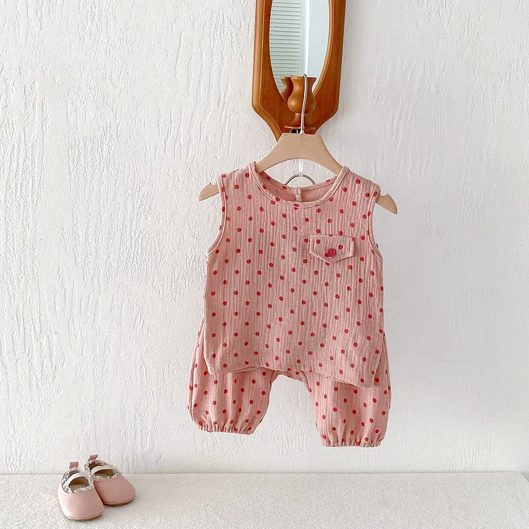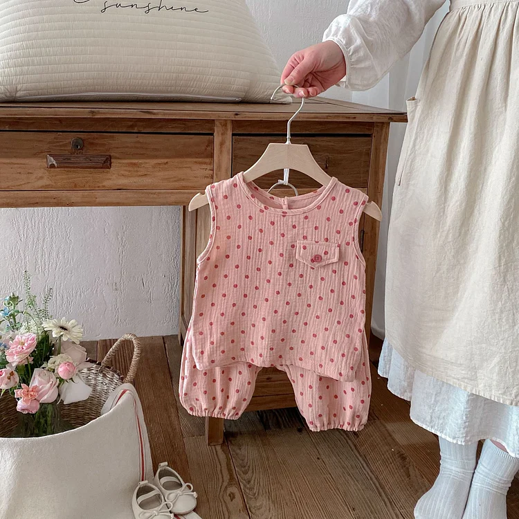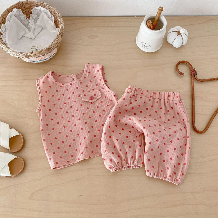 【80-130cm】セットアップ ベビー ノースリーブ ドット柄