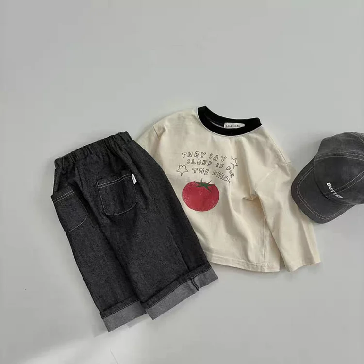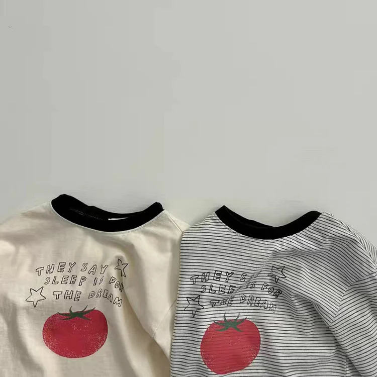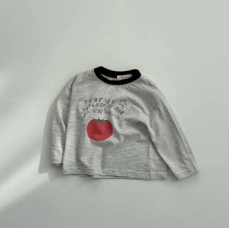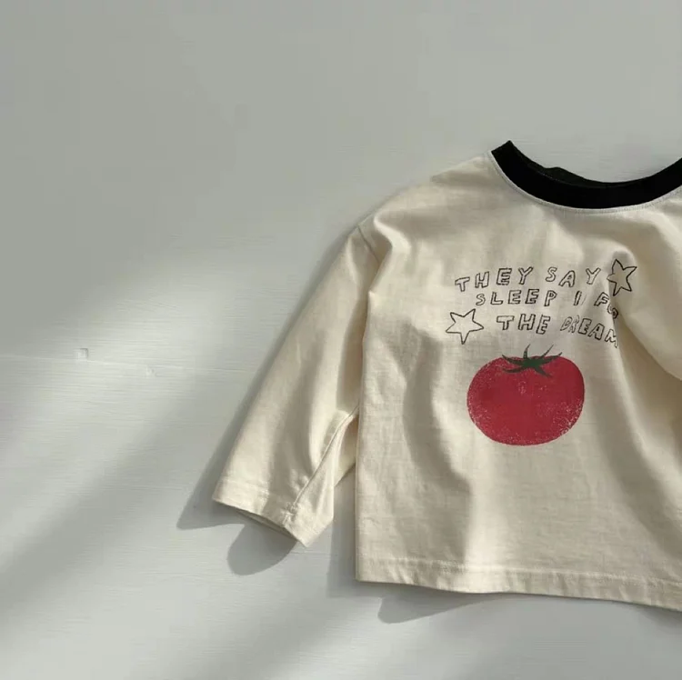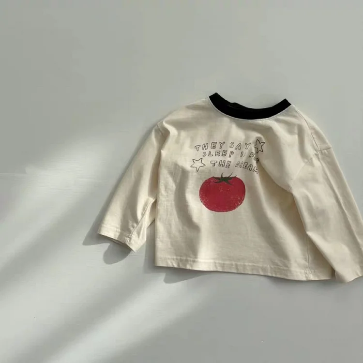 【73-100cm】シャツ ベビー りんご柄 着やすい