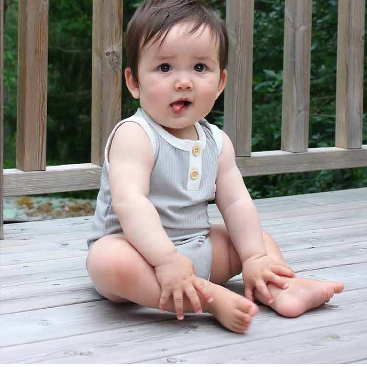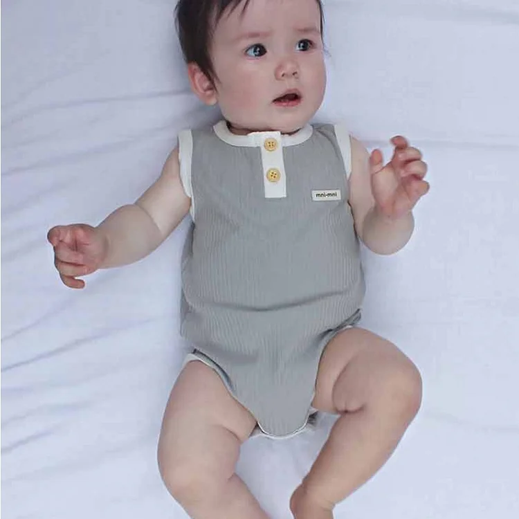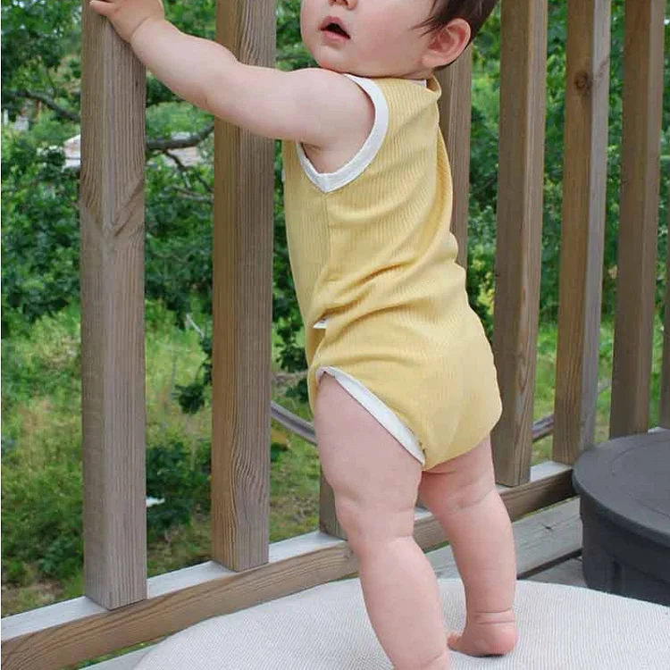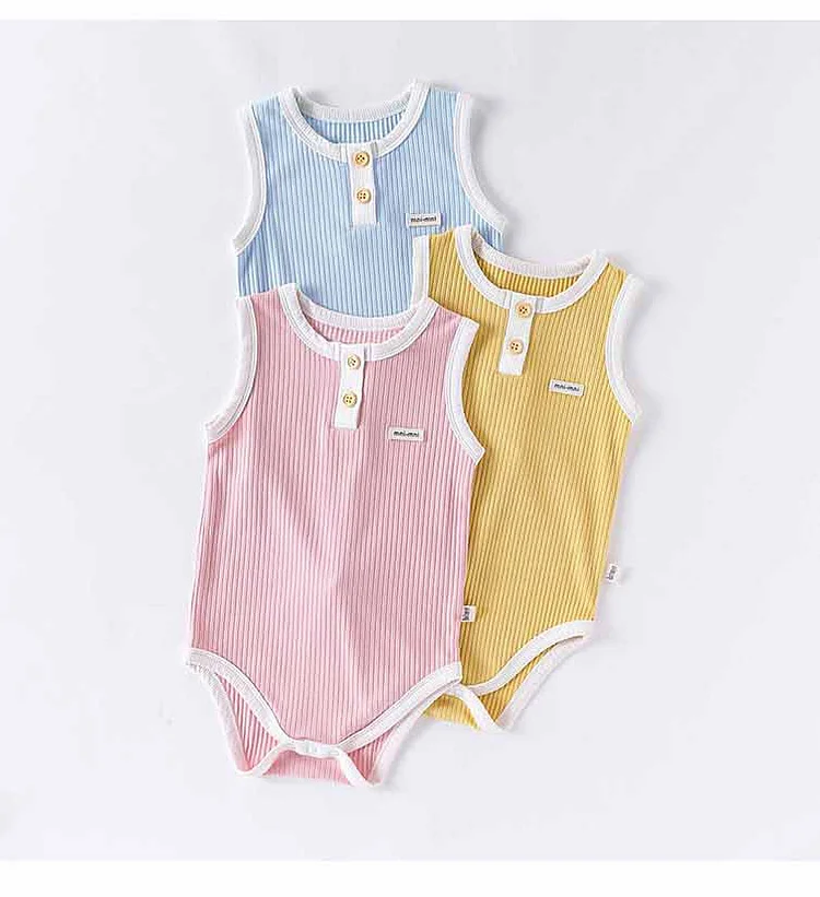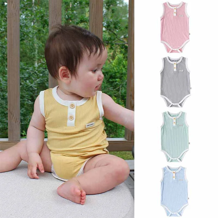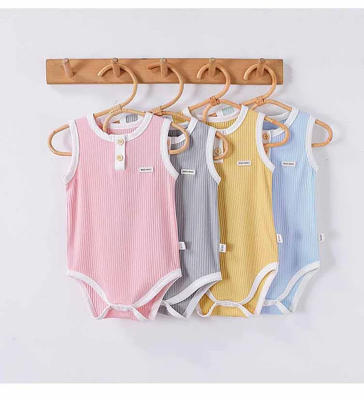 【66-90cm】ロンパース ベビー 無地 ノースリーブ