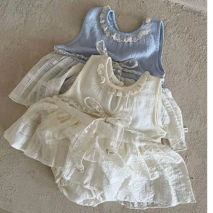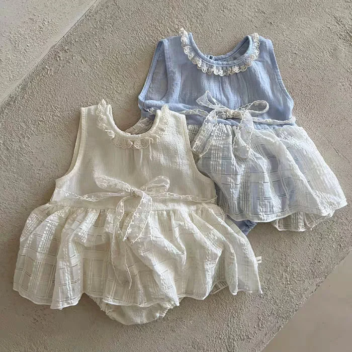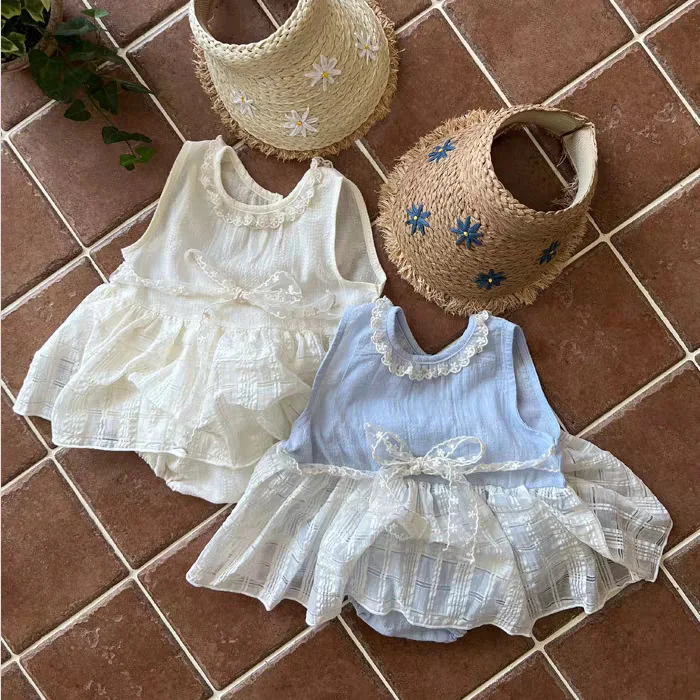 【66-90cm】スカート風 ロンパース ベビー女の子 レース