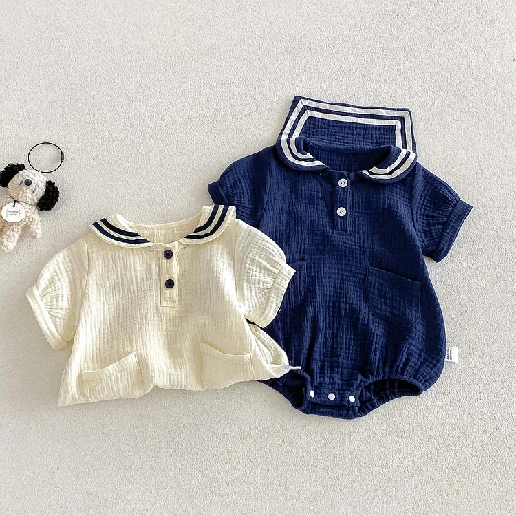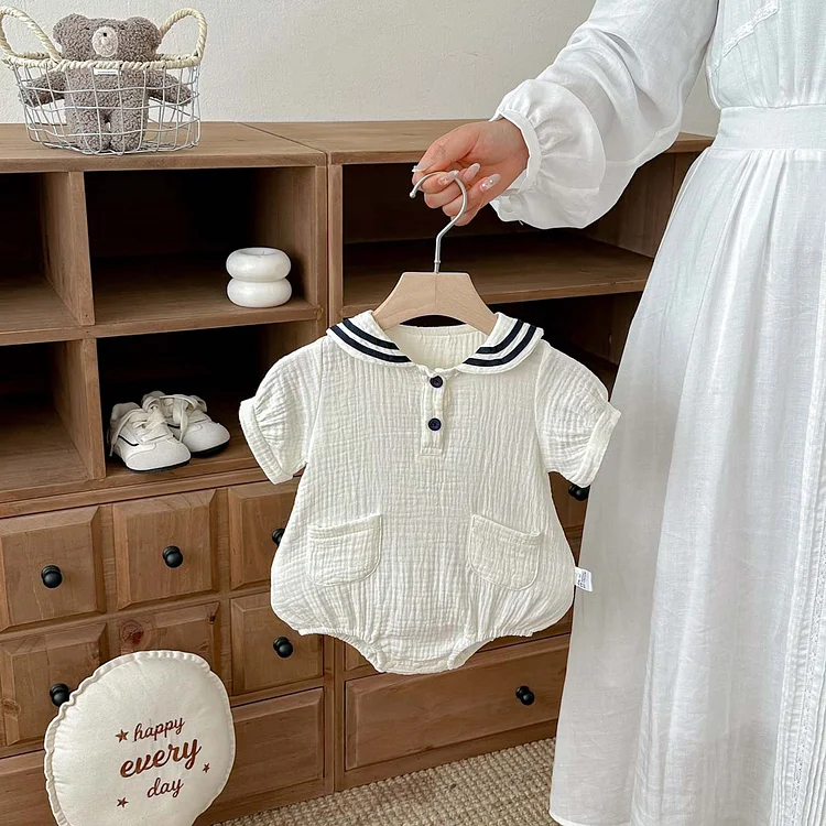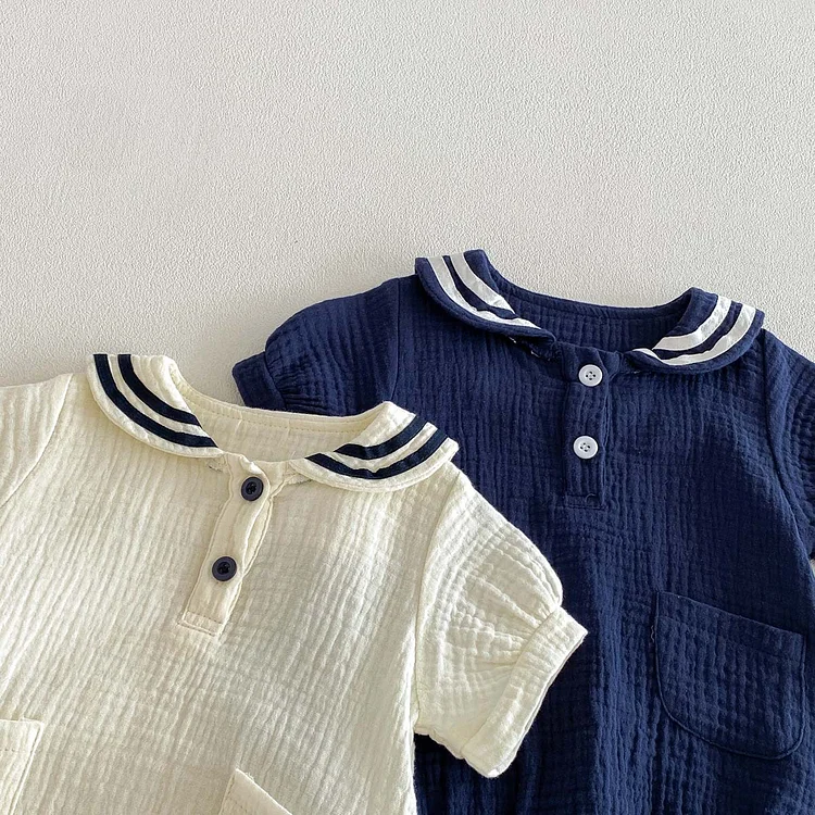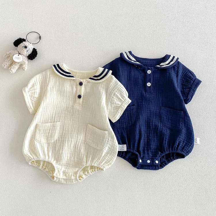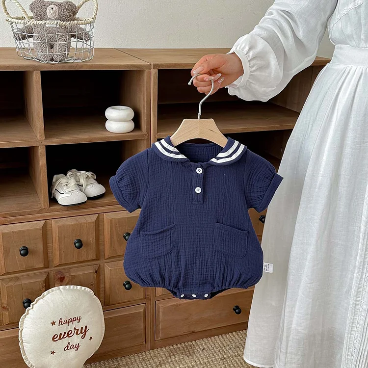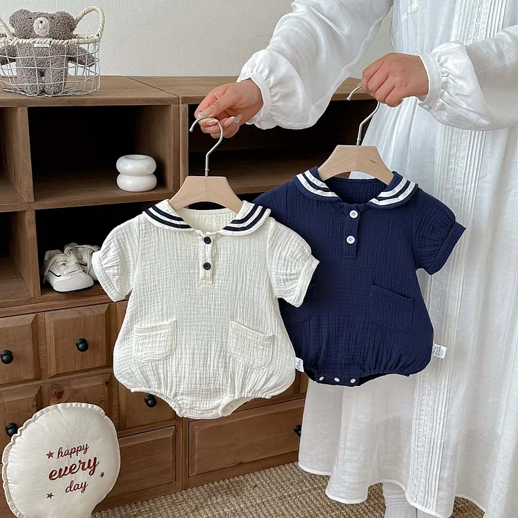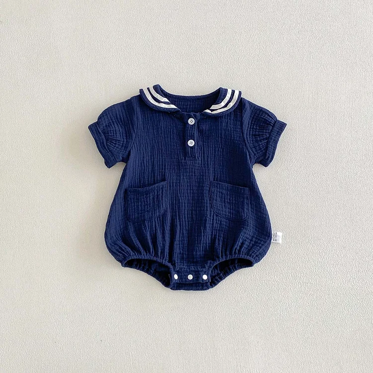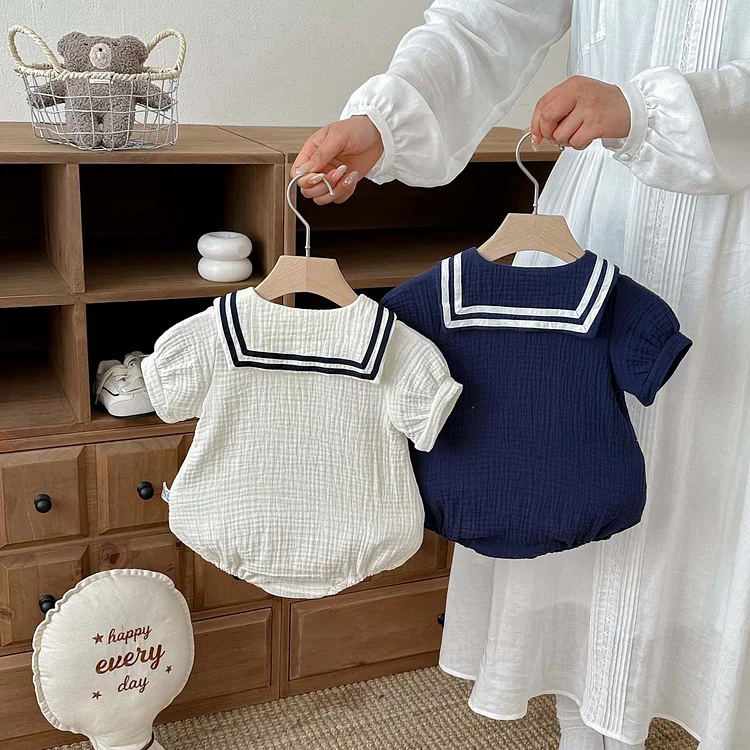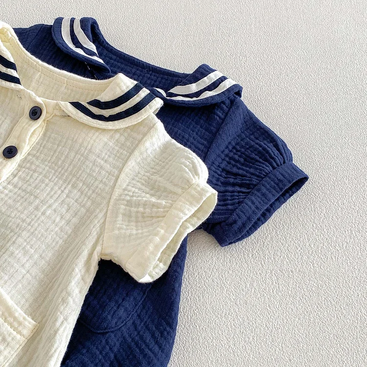 【66-90cm】セーラー ロンパース ベビー 丸襟 キュート