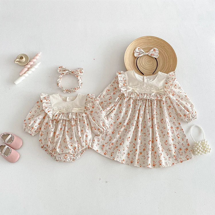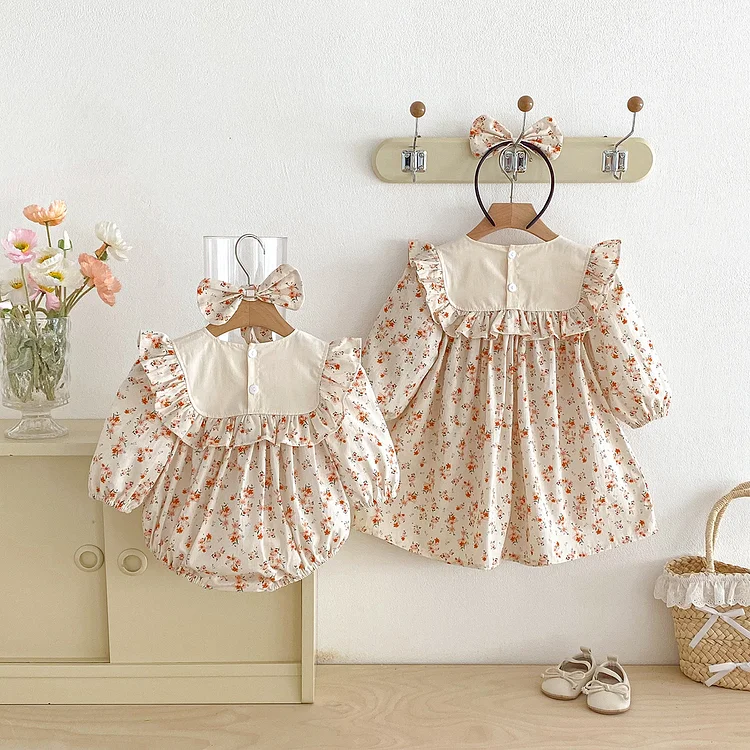 【66-140cm】ロンパース or ワンピース ベビー 女の子 小花柄