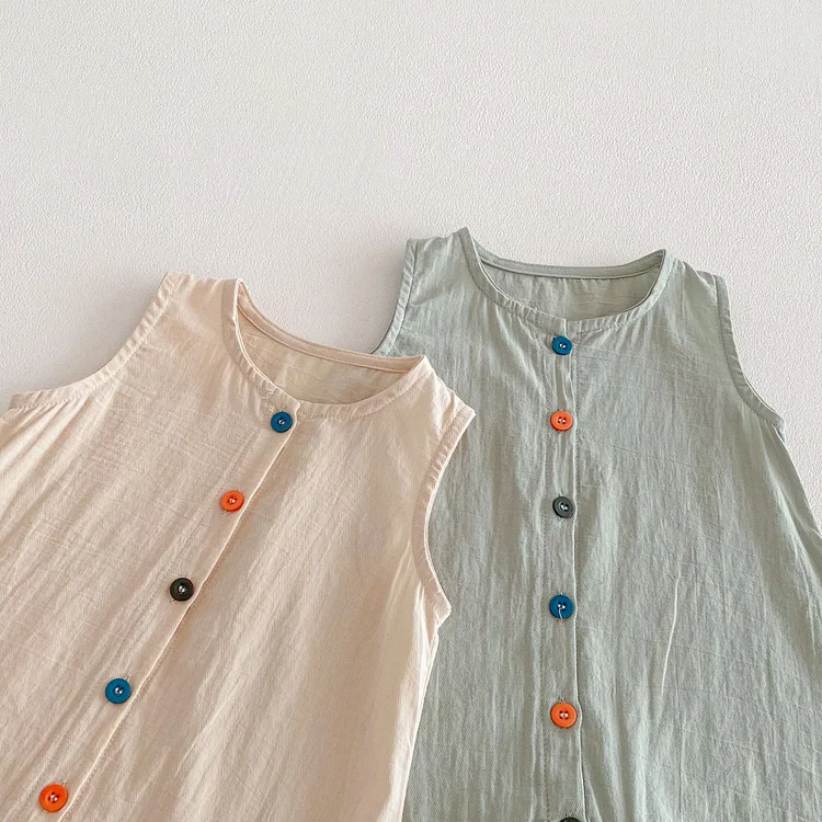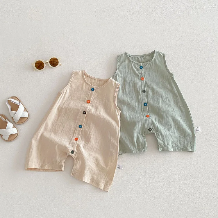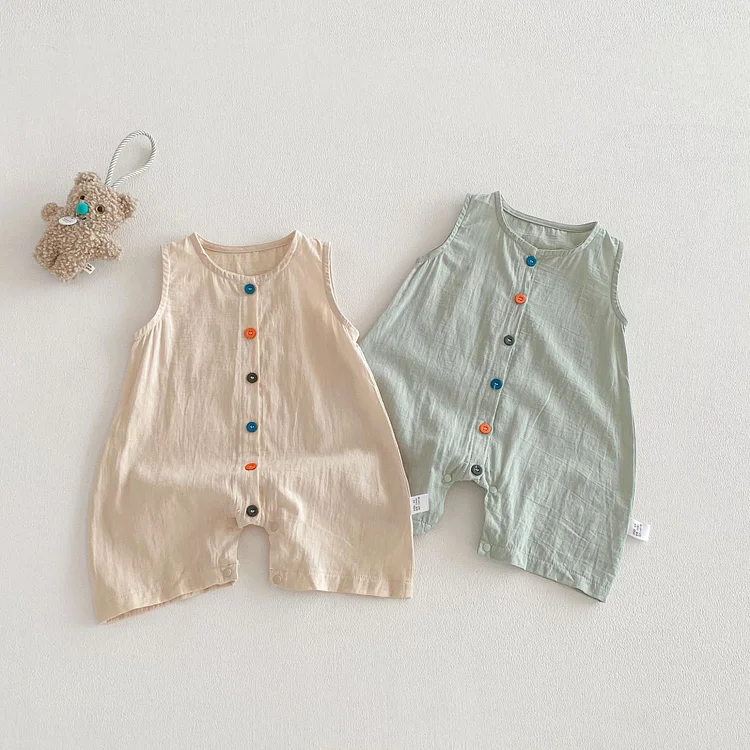 【66-90cm】ロンパース ベビーノースリーブ カラフル