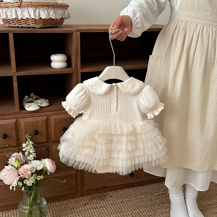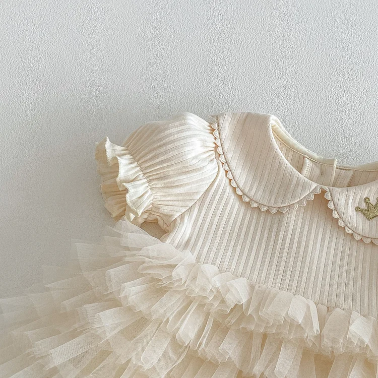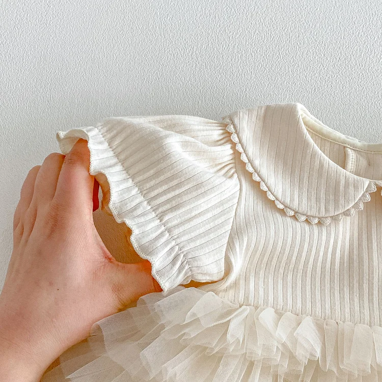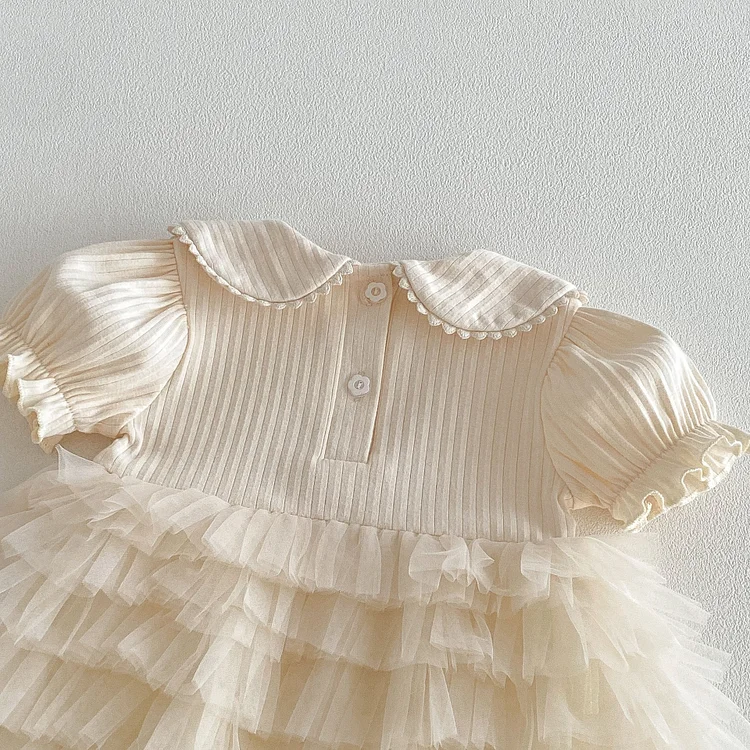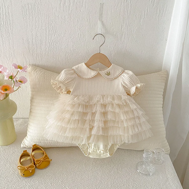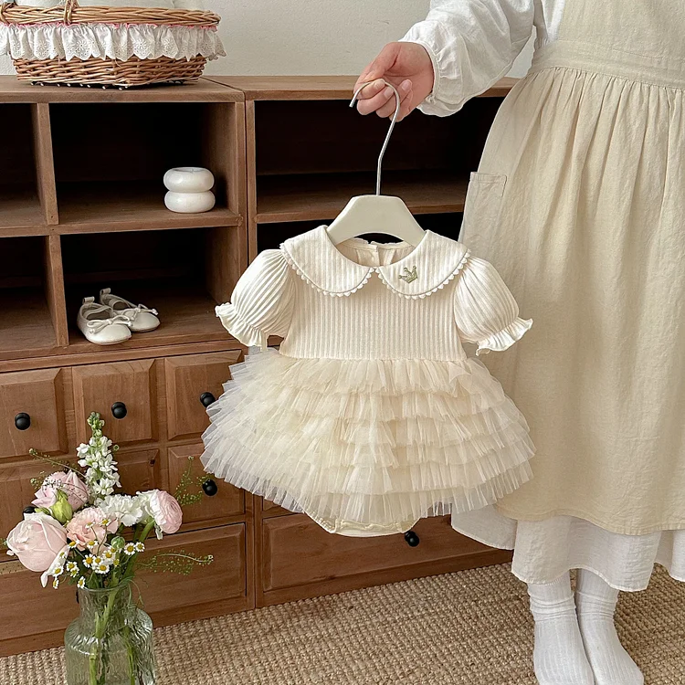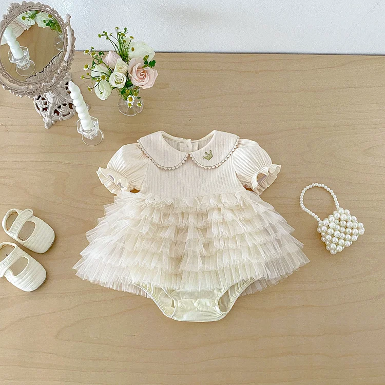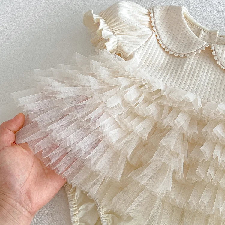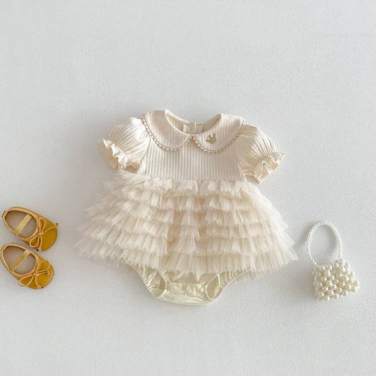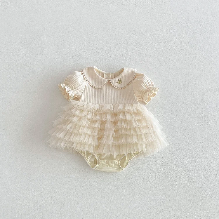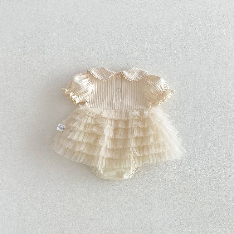 【66-90cm】ロンパース ベビー 女の子 丸襟 レース
