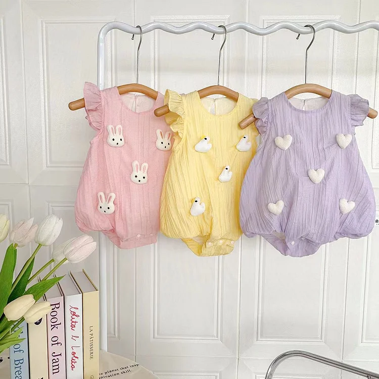 【66-90cm】ロンパース ベビー ウサギ 可愛い 肩フリル