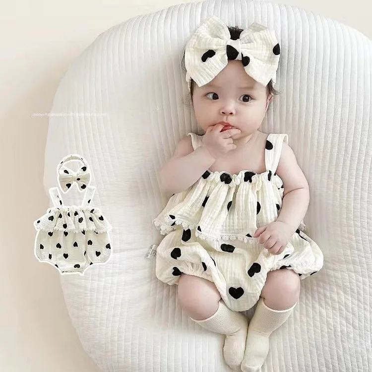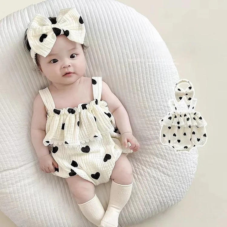 【66-90cm】ロンパース ベビー 女の子 バンド付き ハート柄