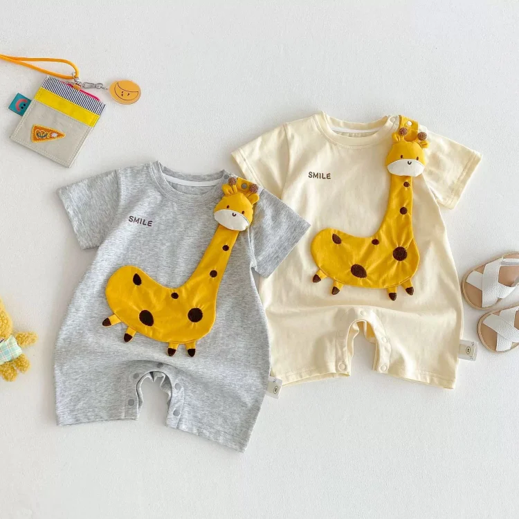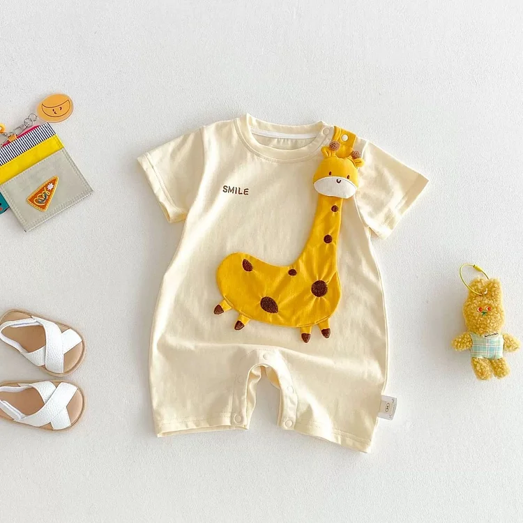 【66-90cm】ロンパース ベビー 可愛い キリンデザイン