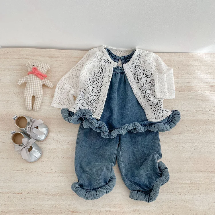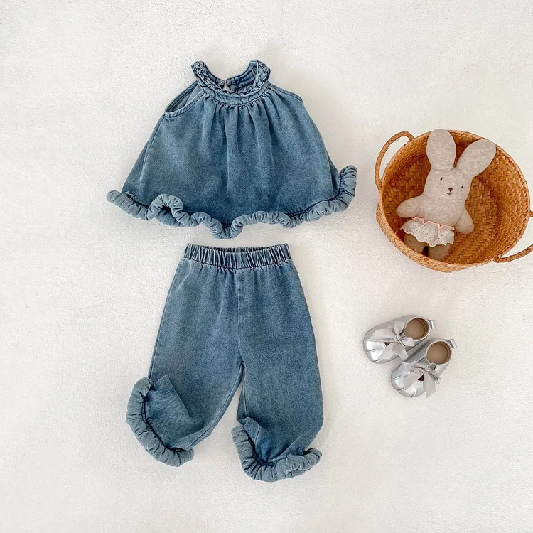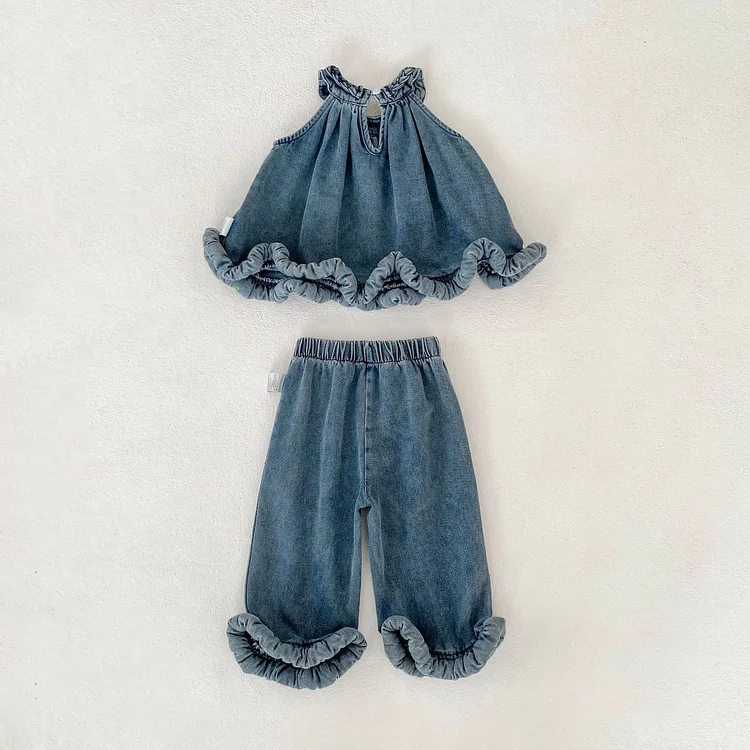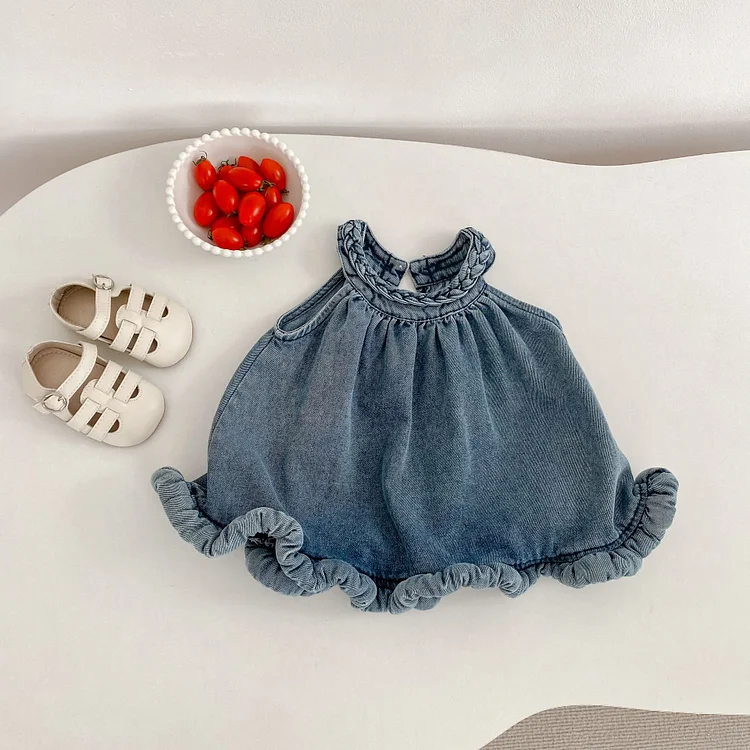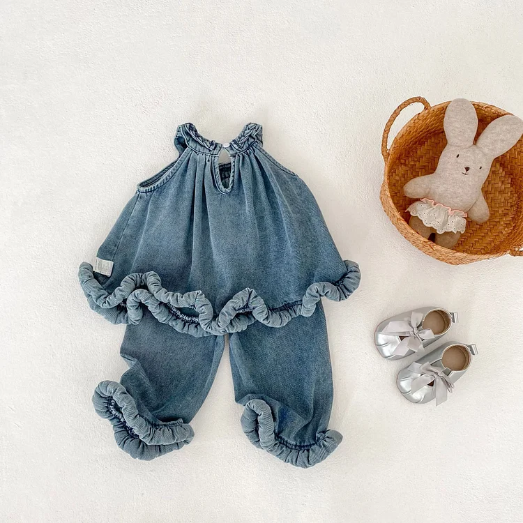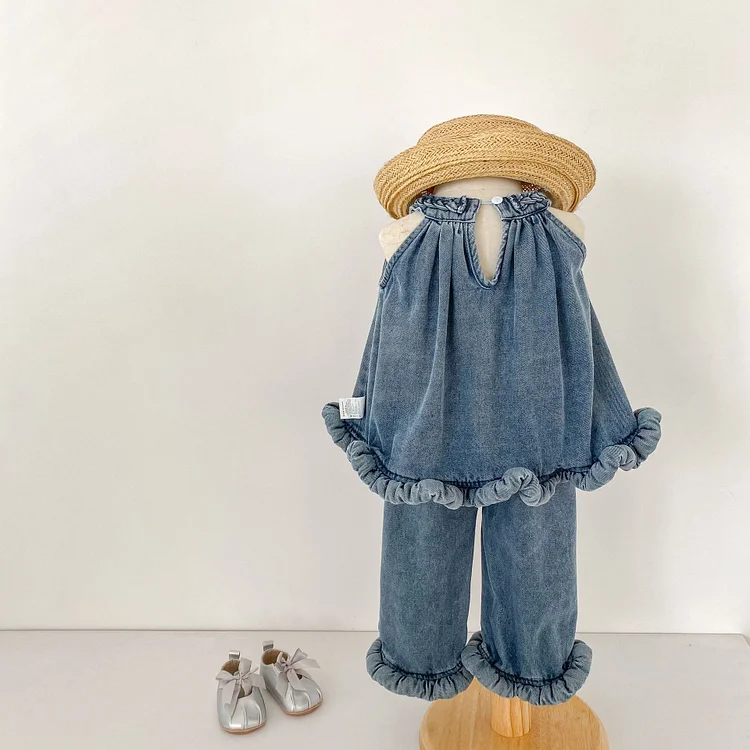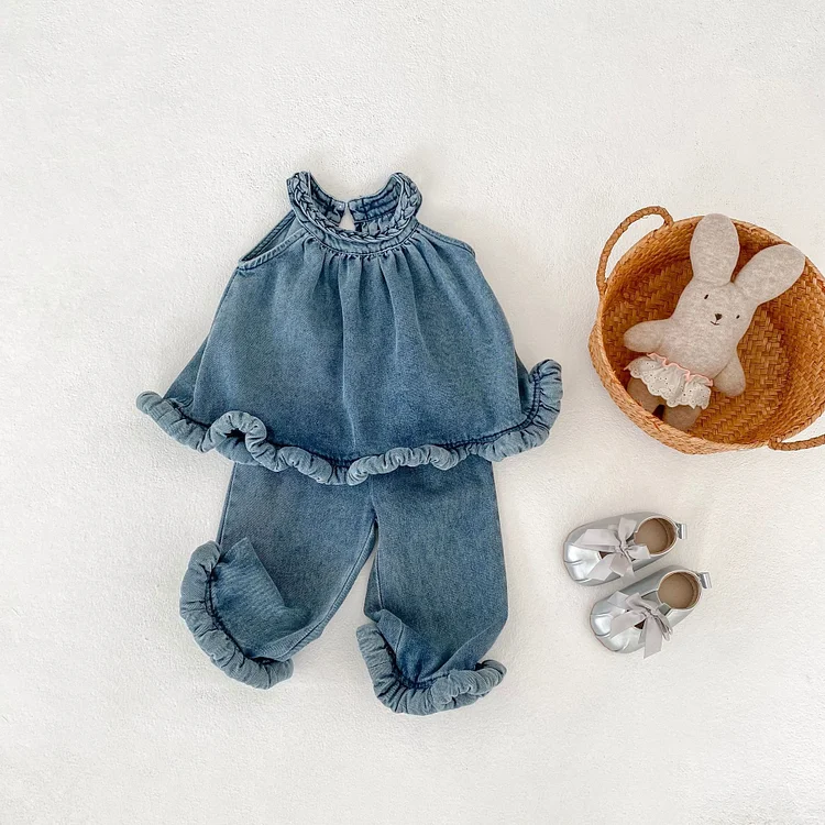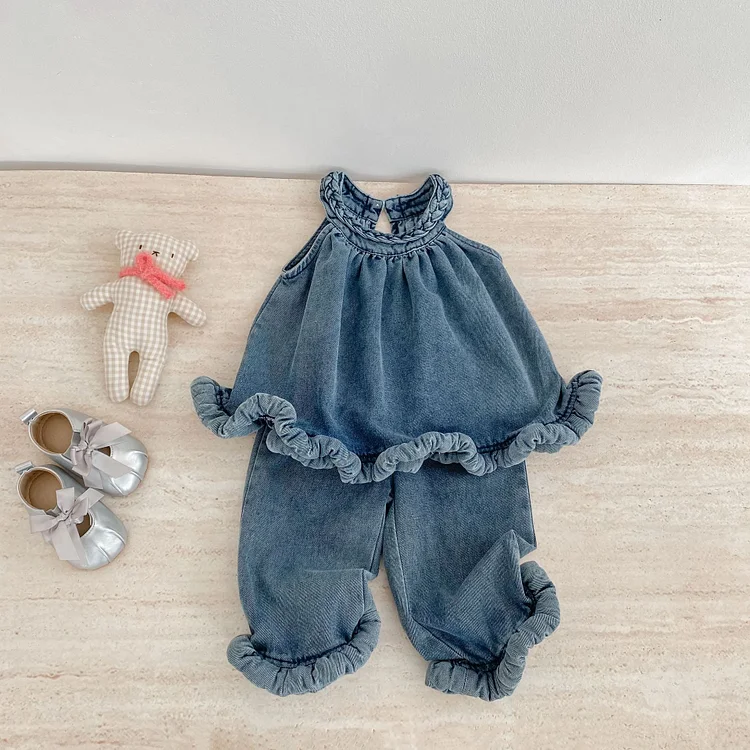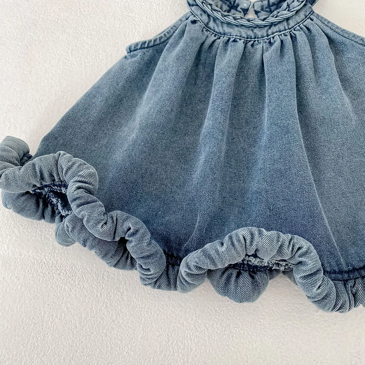 【73-130cm】デニムセットアップ ベビー 女の子 ハルターネック