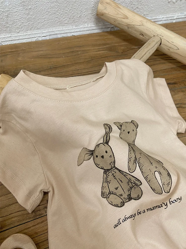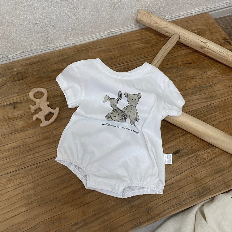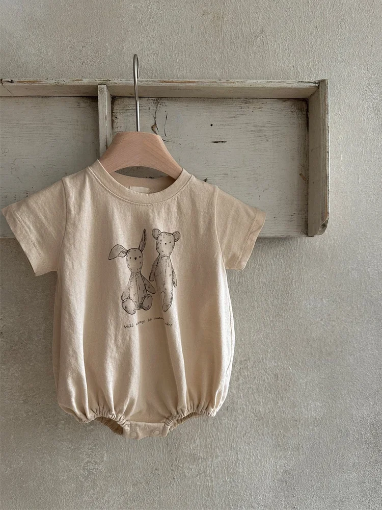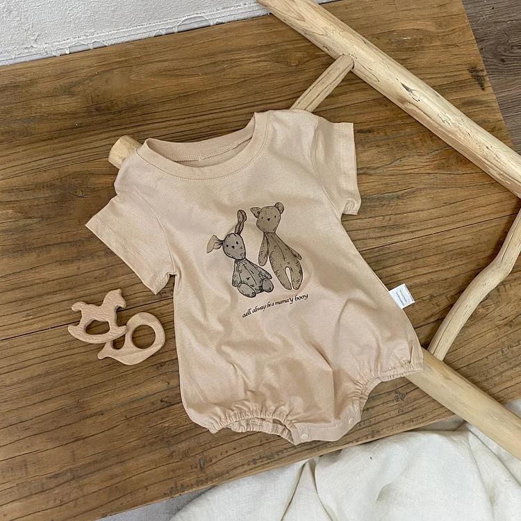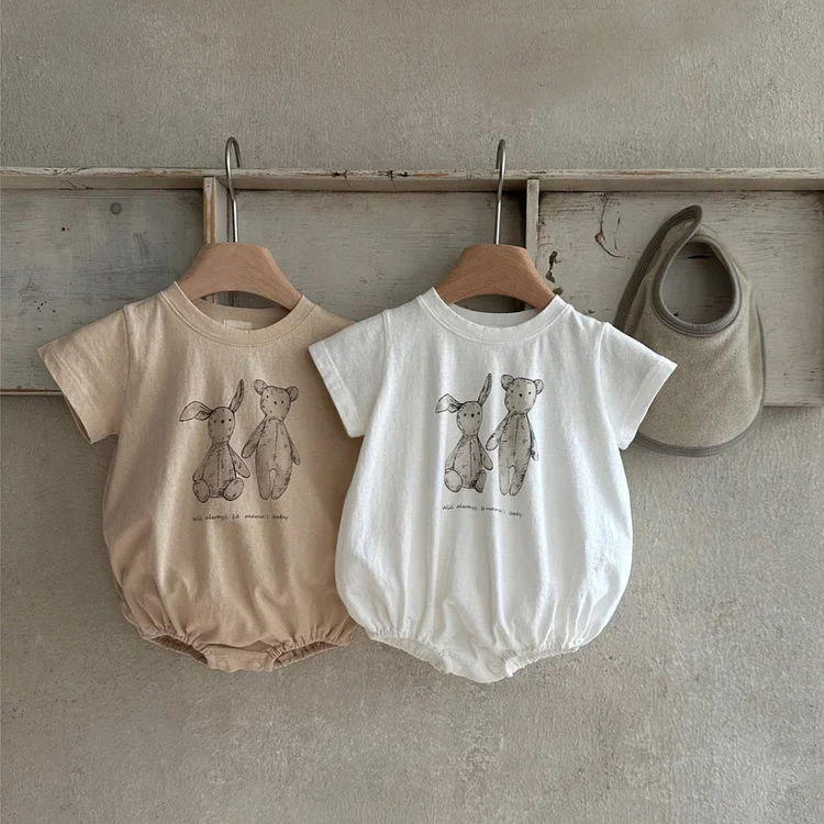 【66-90cm】ロンパース ベビー 半袖 ウサギ柄 着心地抜群
