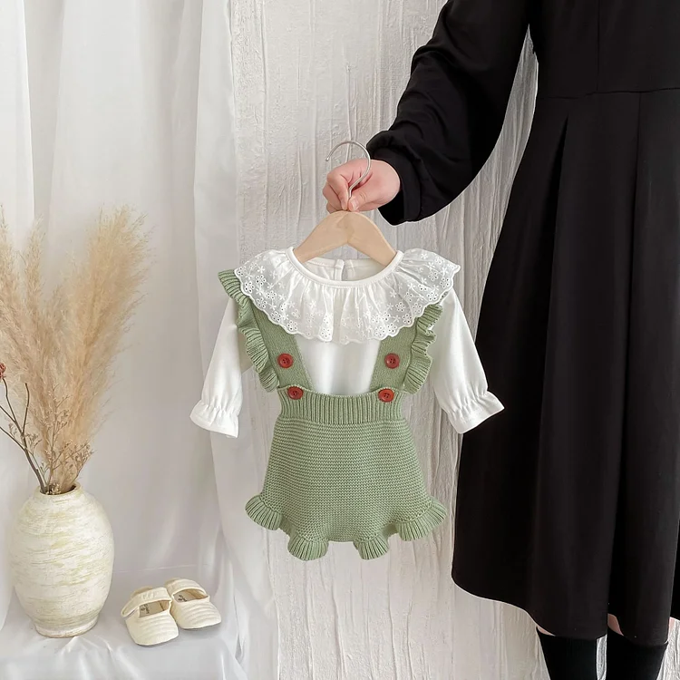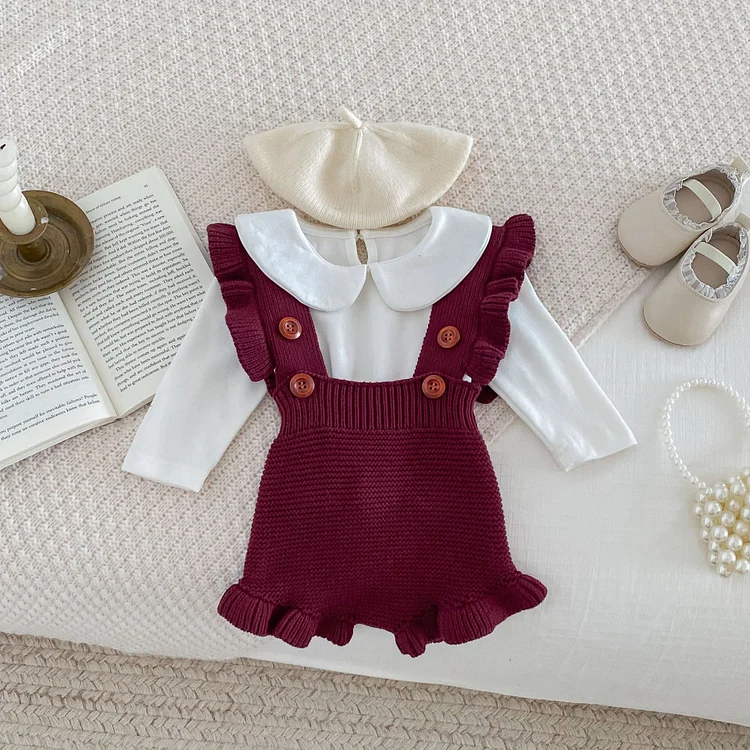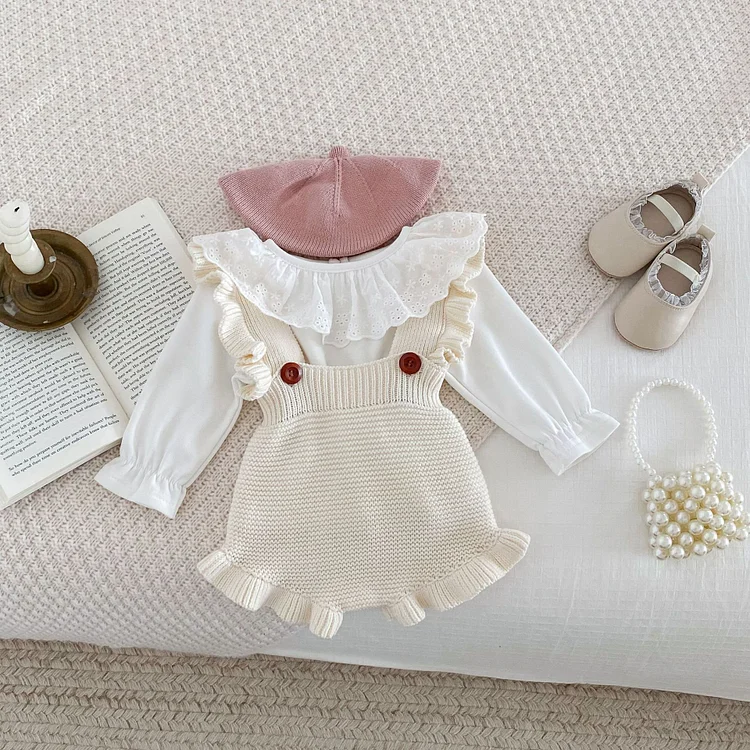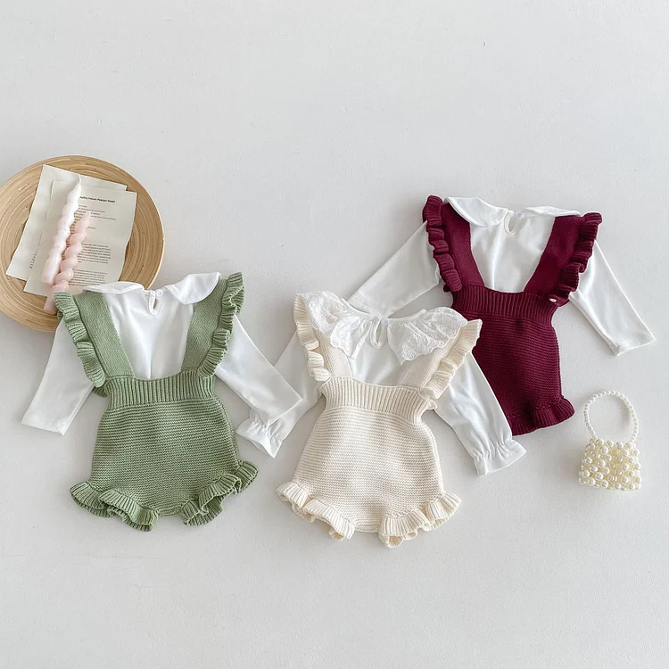 【66-100cm】 フリル ニット サロペット