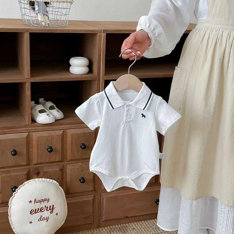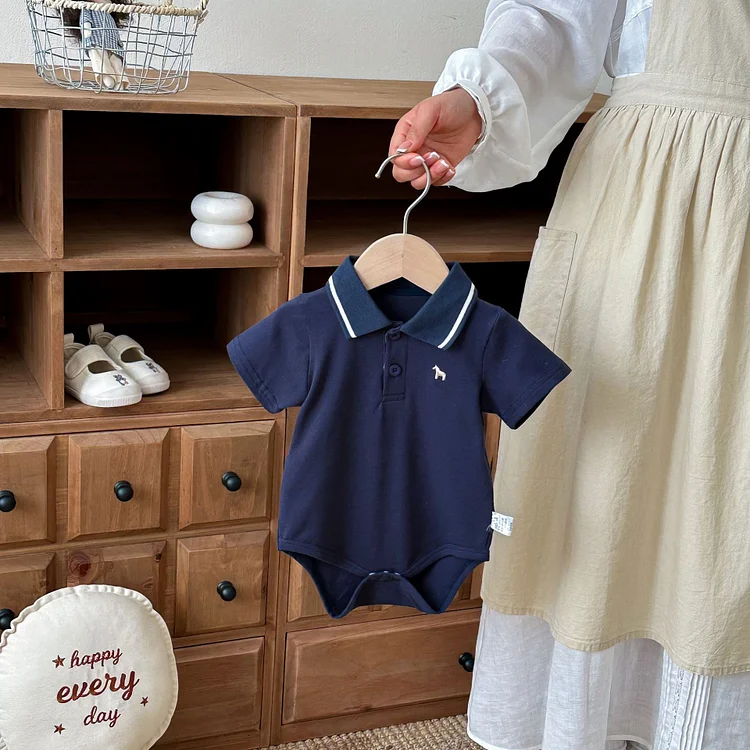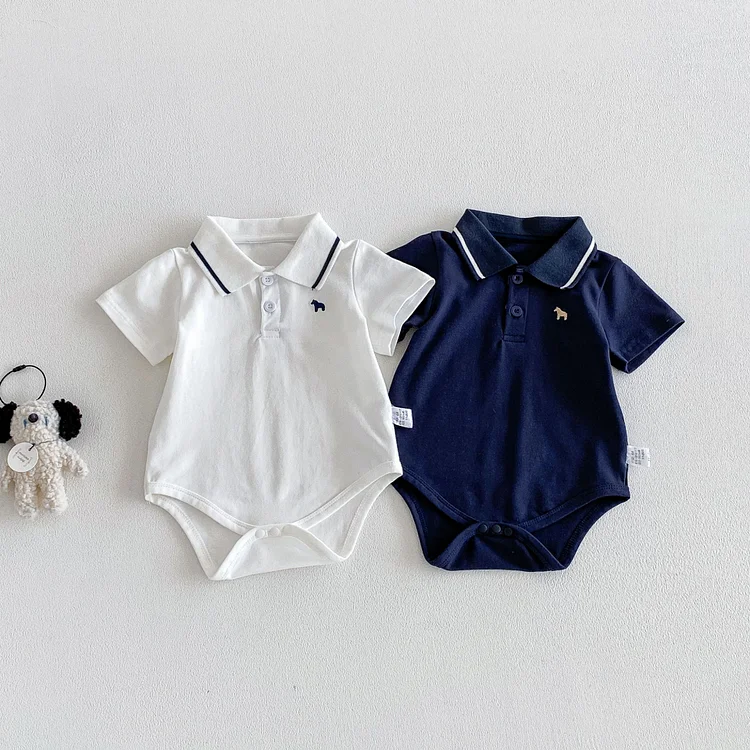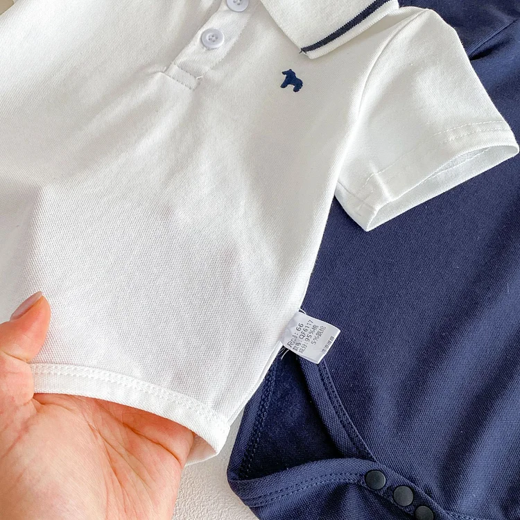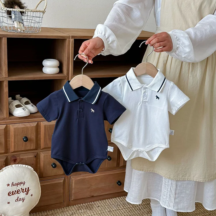 【66-90cm】ロンパース ベビー 半袖 ポロデザイン シンプル