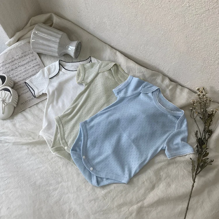 【66-90cm】ロンパース ベビー 半袖 無地 通気性抜群 肌触り良い