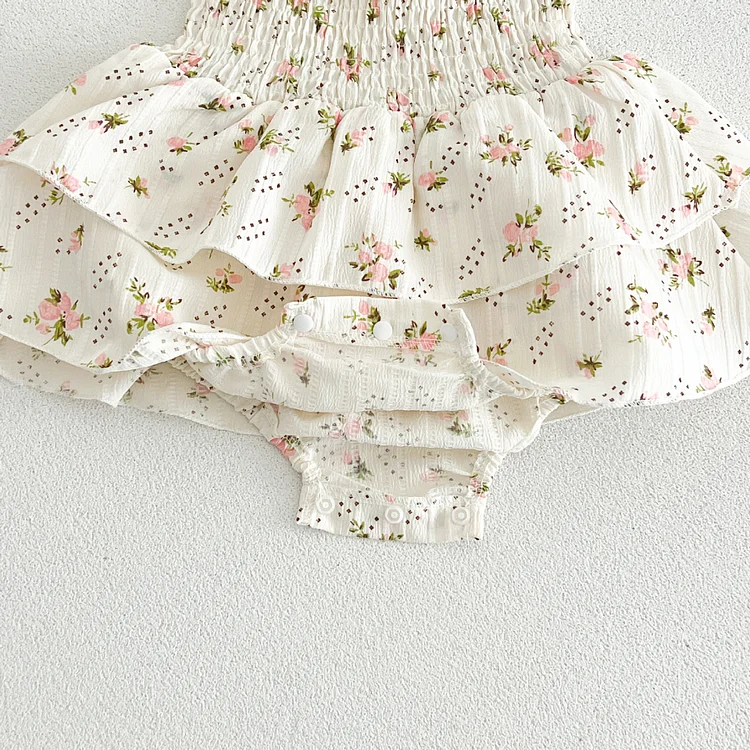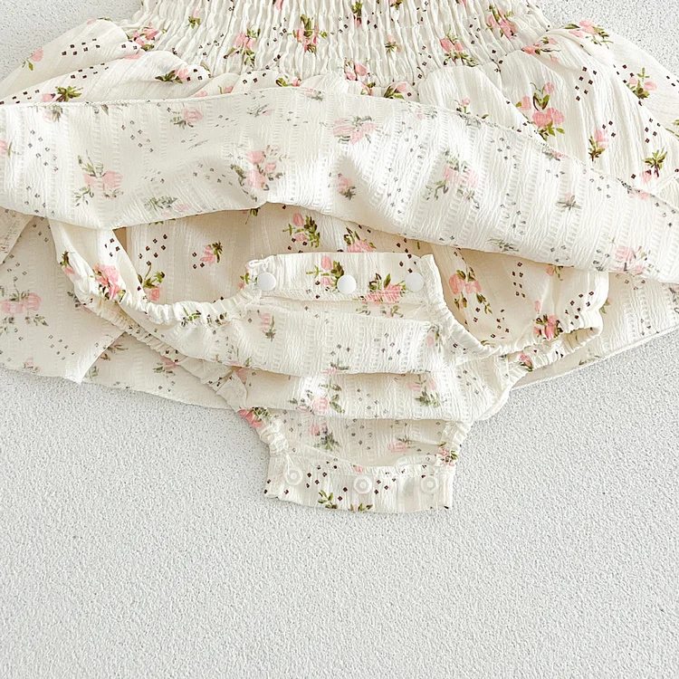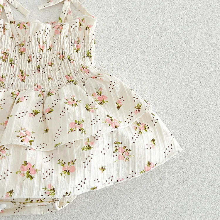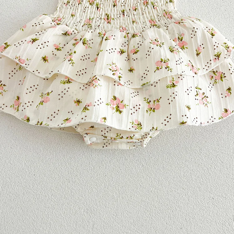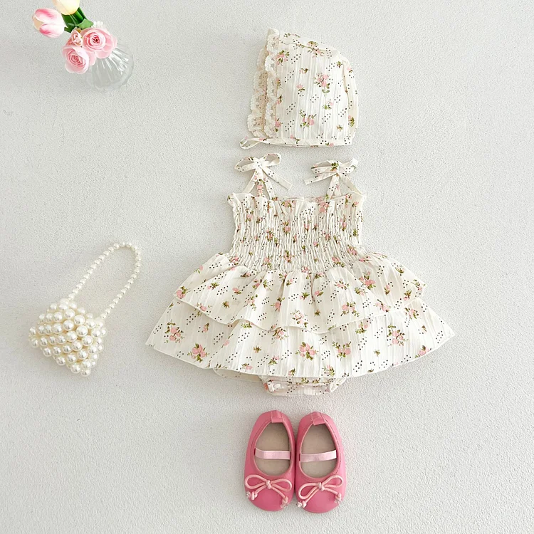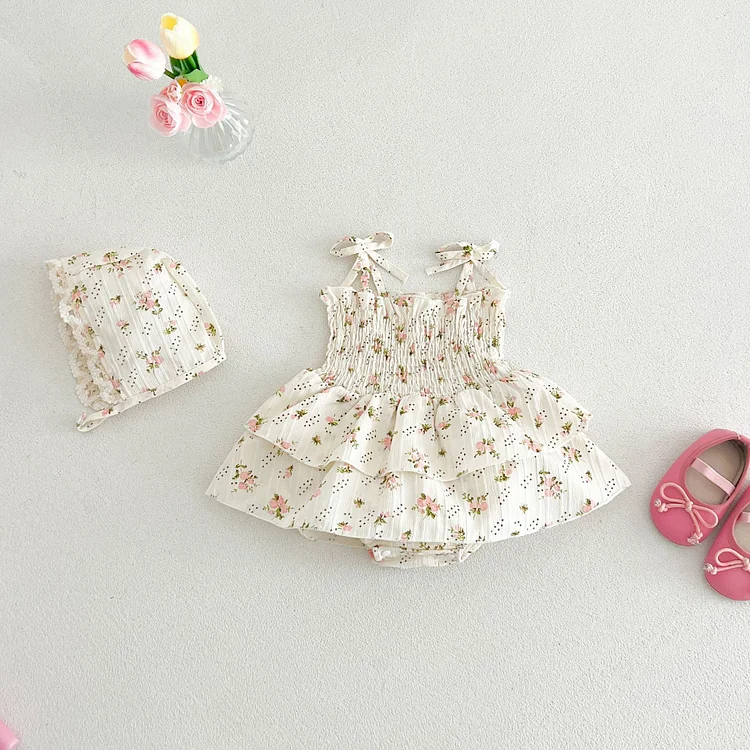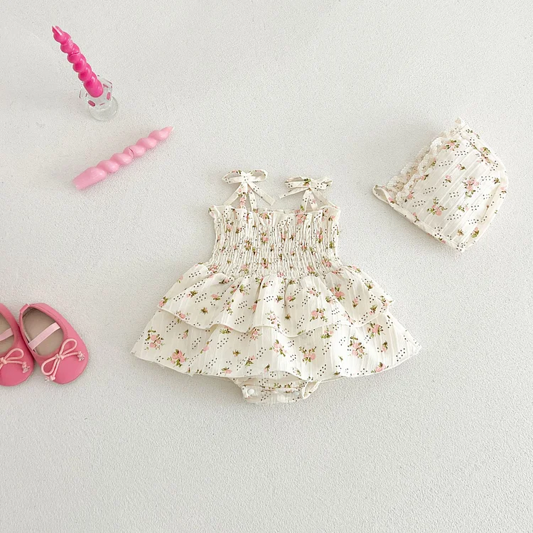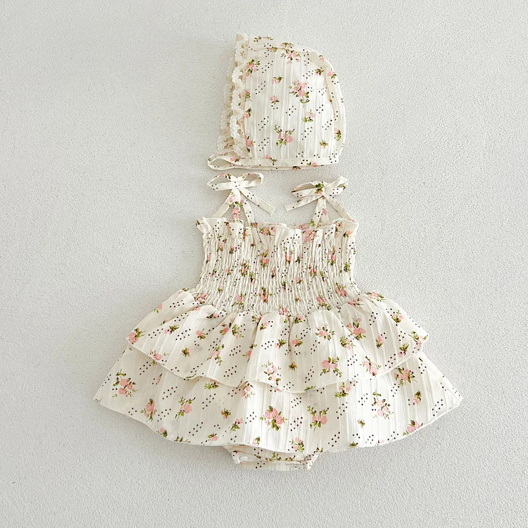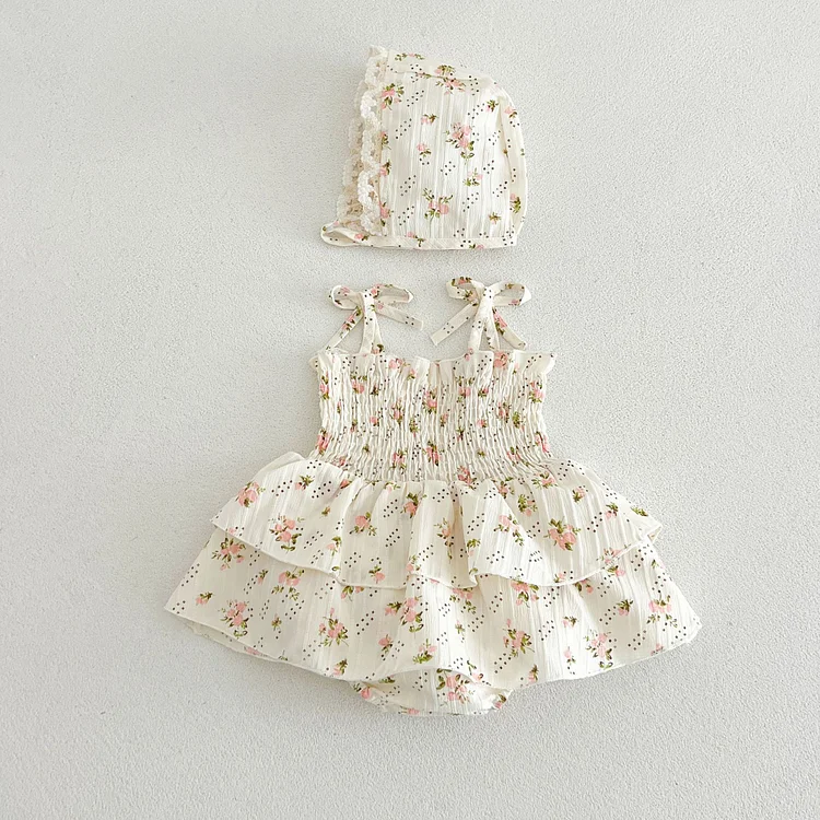 【66-100cm】ロンパース ボンネット付き ベビー 女の子リボン 小花柄