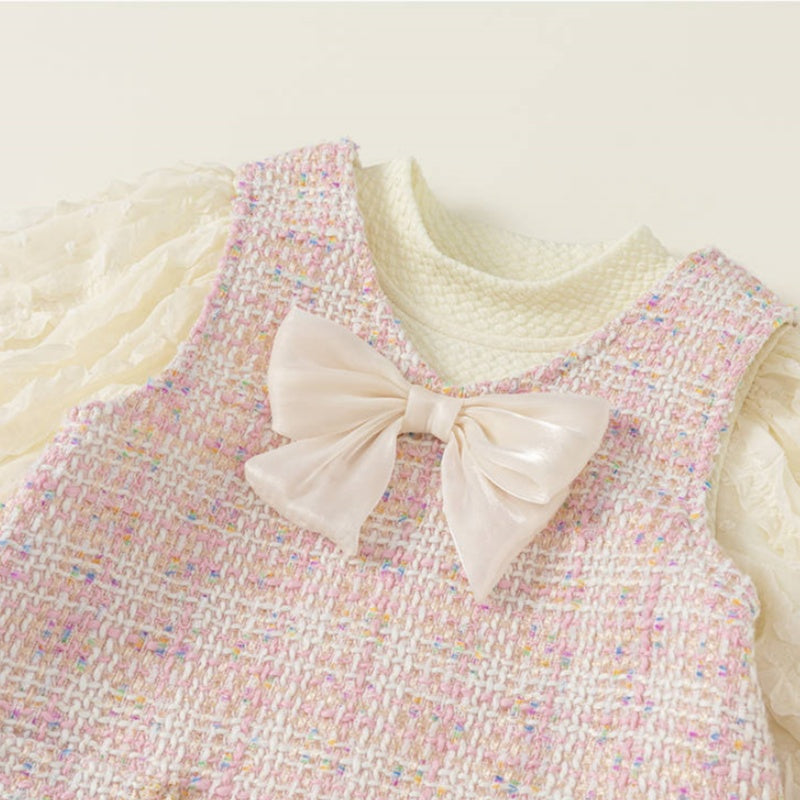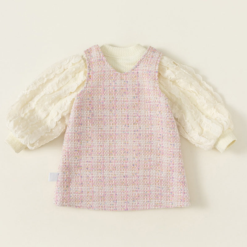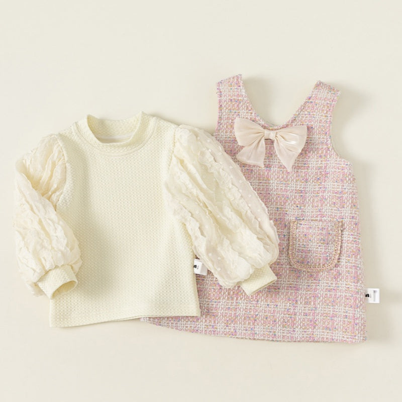 【80-140cm】シャネル風 ジャンパースカート&パフスリーブブラウス