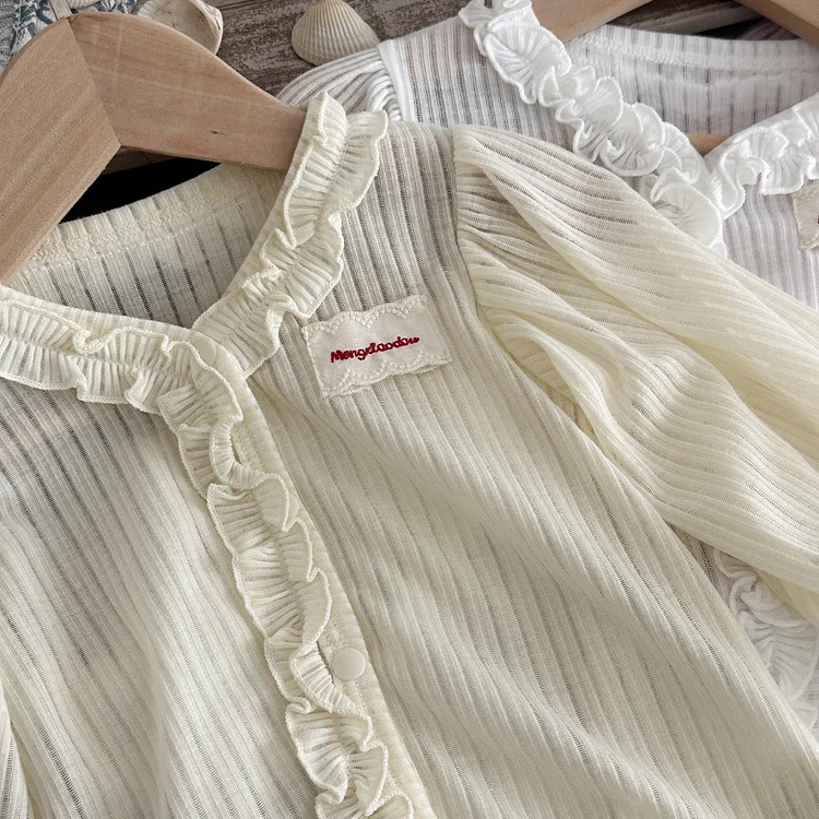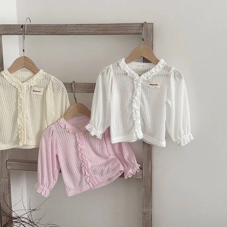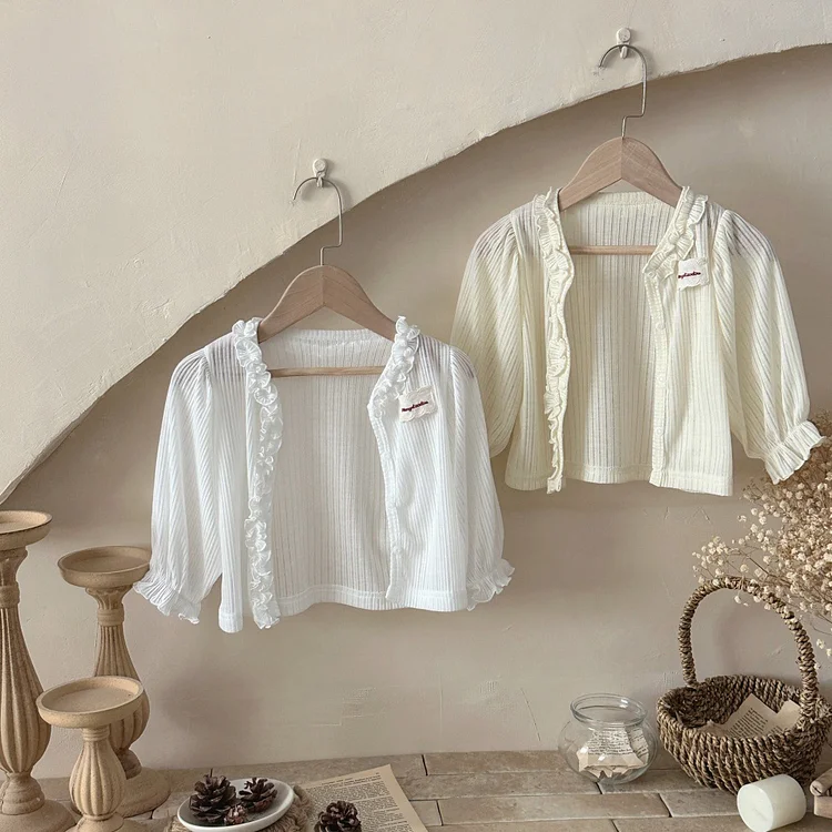 【73-100cm】カーディガン ベビー 女の子 フリル 日焼け止め