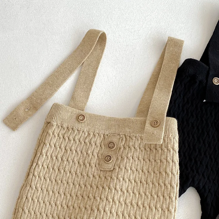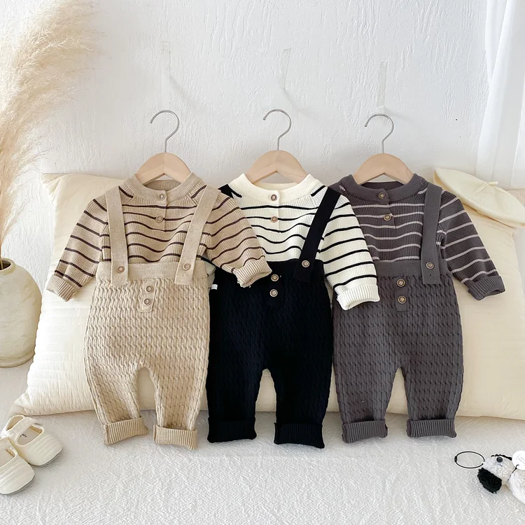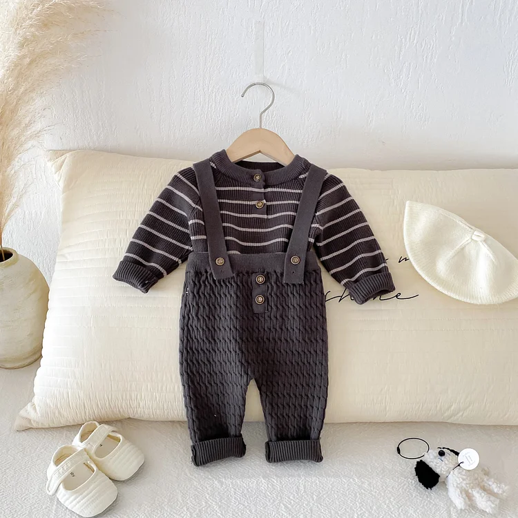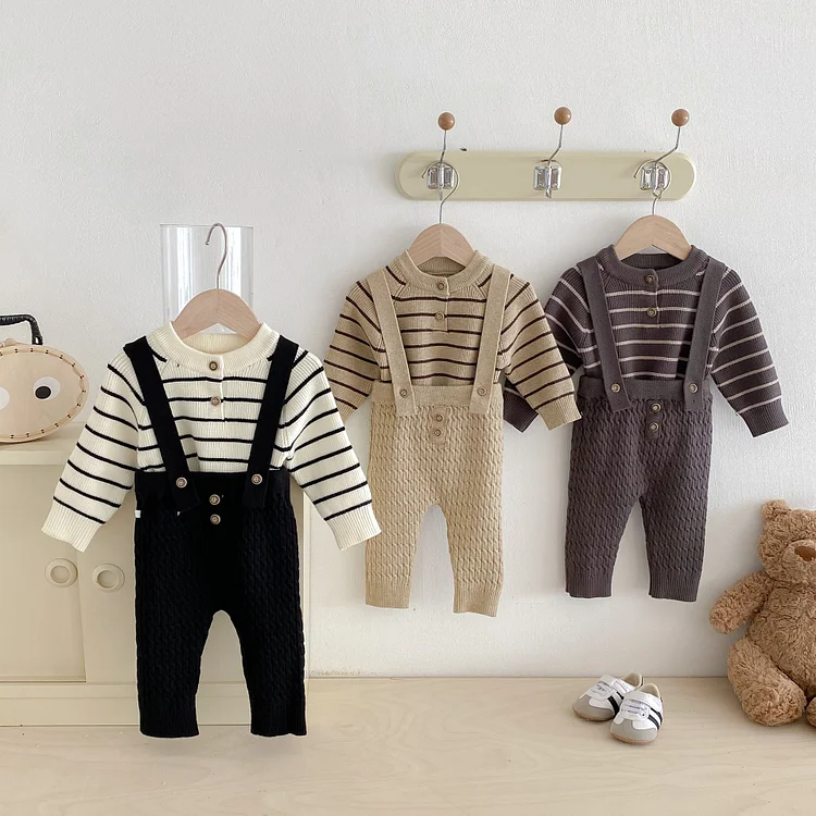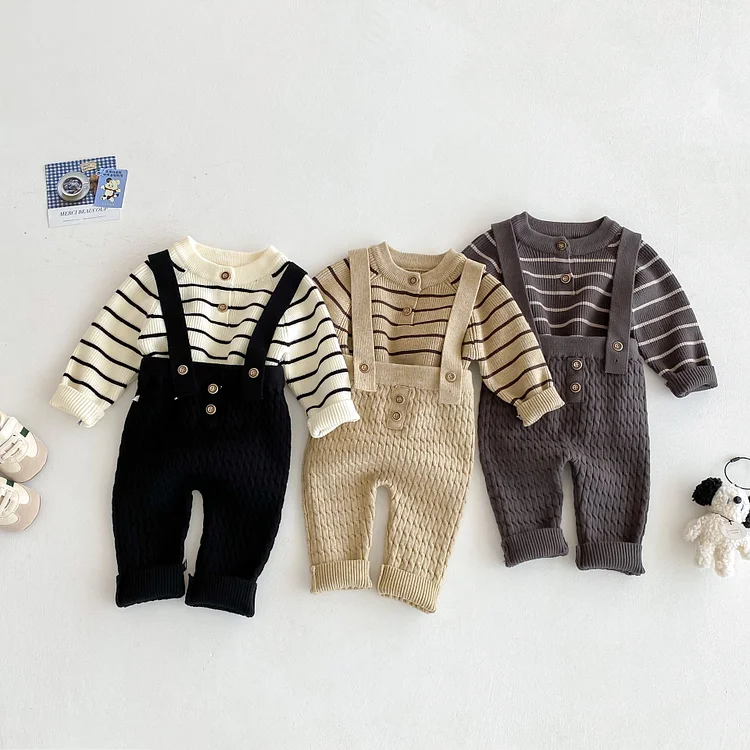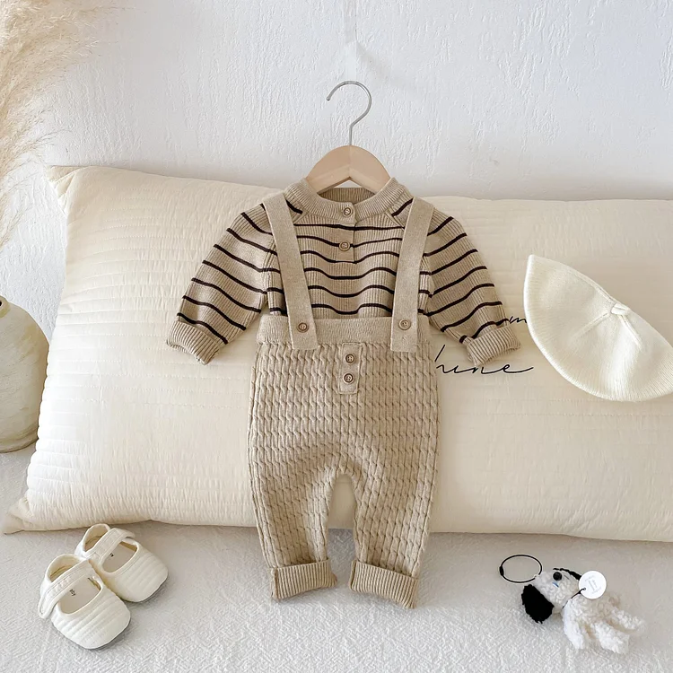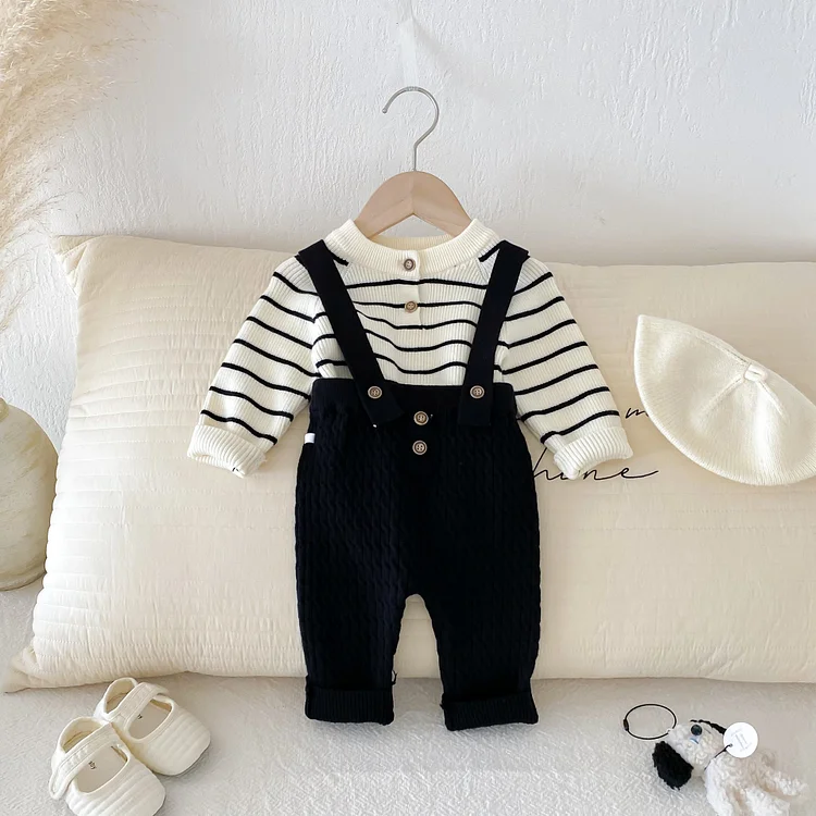 【66-90cm】 ボーダー ニットトップス&サロペット 2点セット