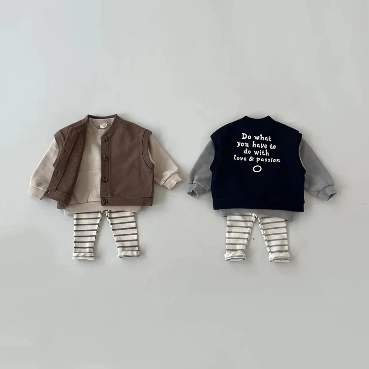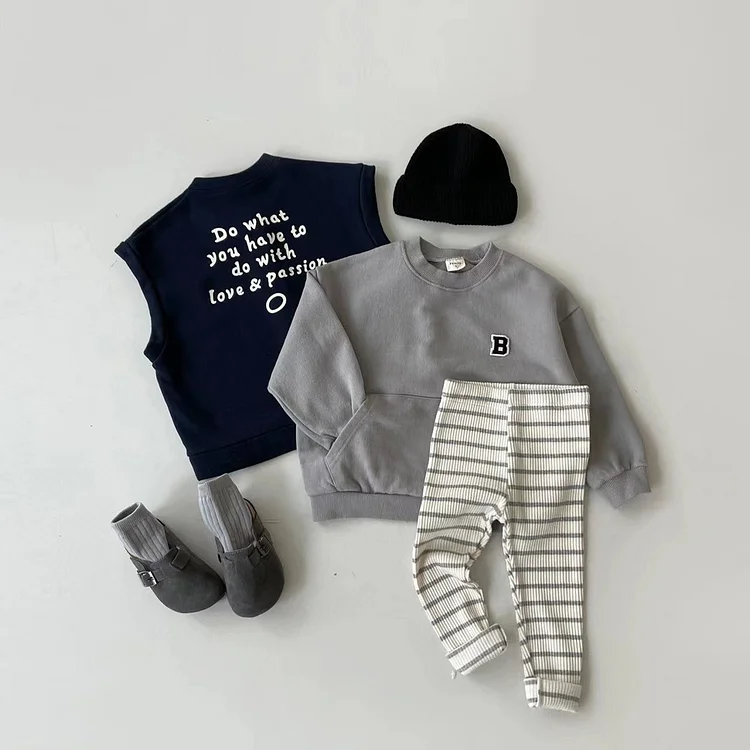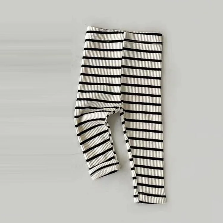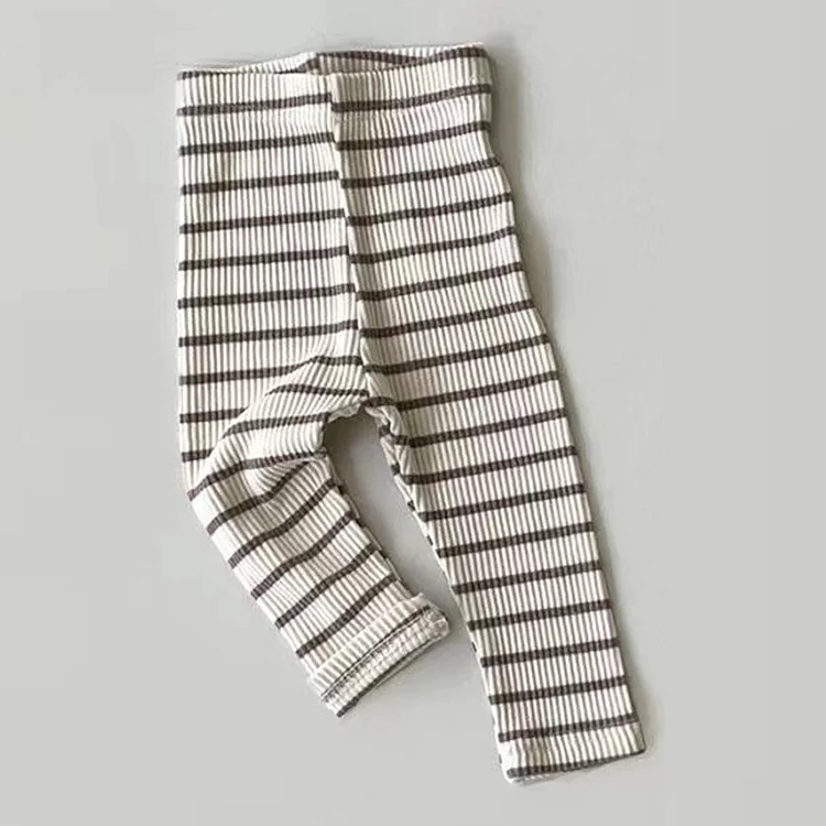 【66-100cm】 スリム コットン ストライプ ベビー ロング パンツ