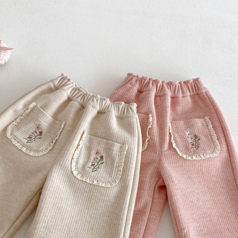 【73-120cm】 刺繍入り あったか カジュアル パンツ