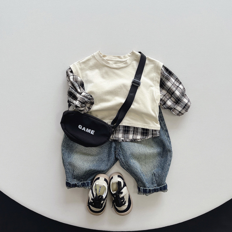 【80-130cm】デザイン満点 切り替え 長袖 Tシャツ
