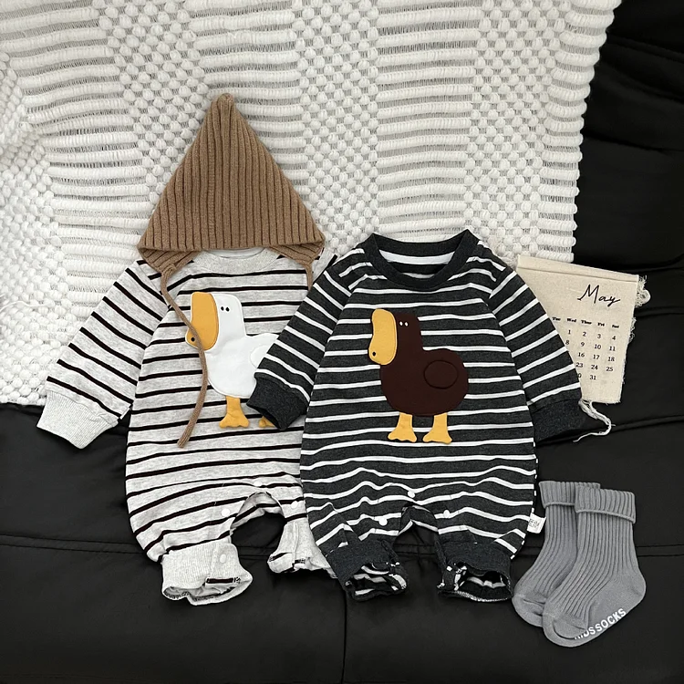 【66-100cm】 アヒル柄 オールインワン