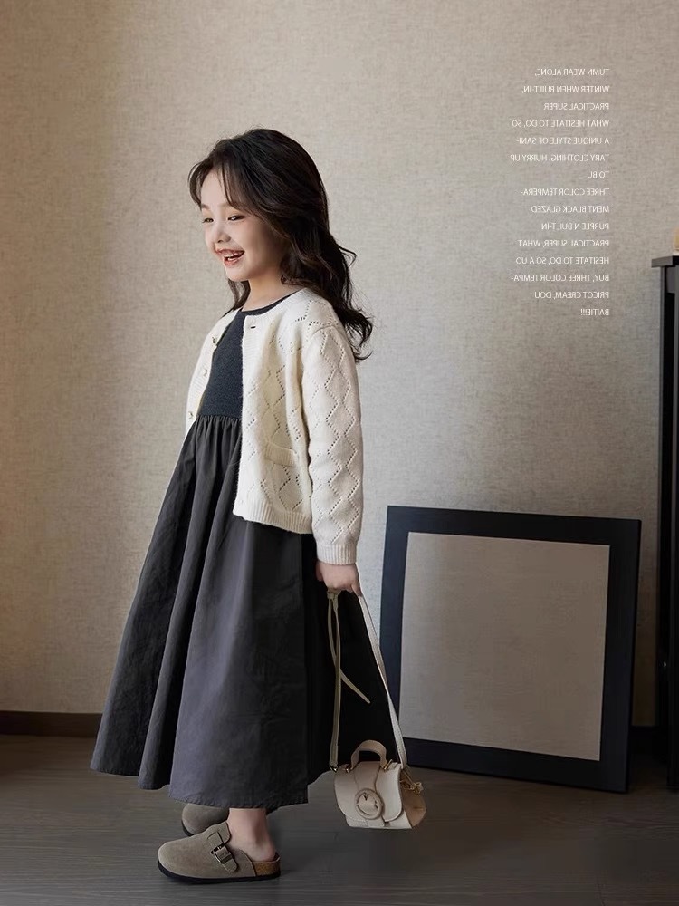 【100-150cm】おしゃれ 無地 女の子 ワンピース