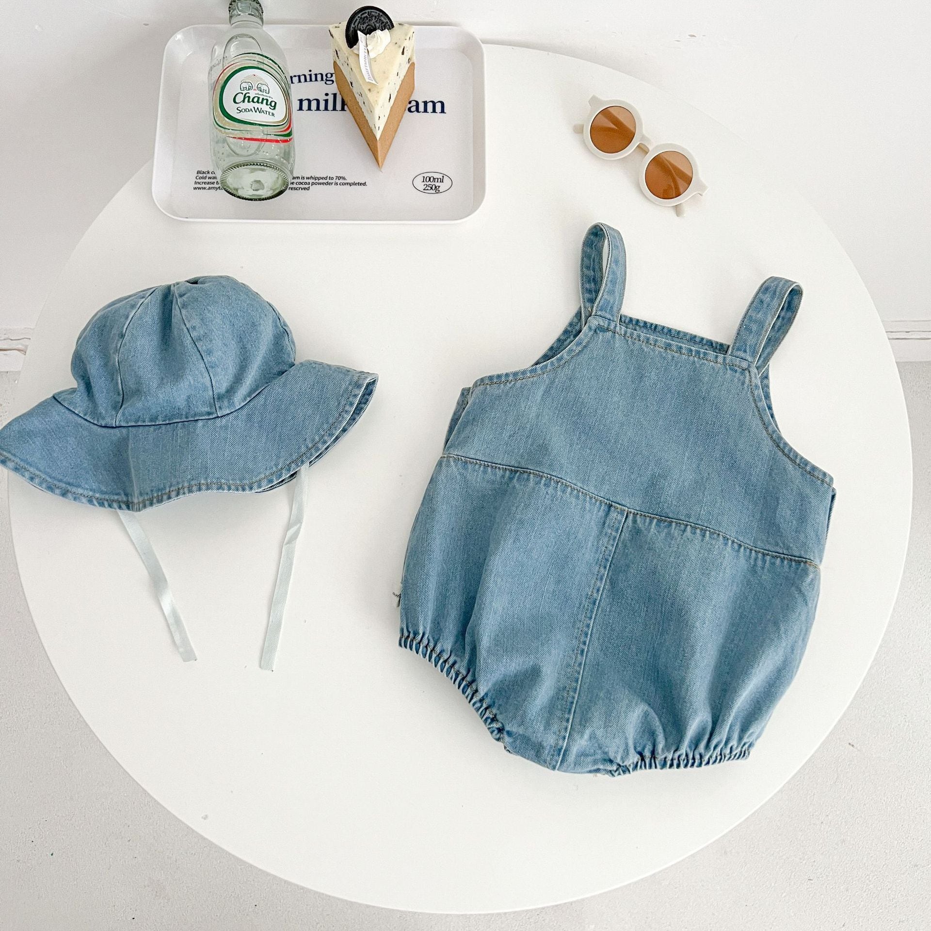 【66-90cm】サロペロンパース&帽子 デニム オシャレ カジュアル