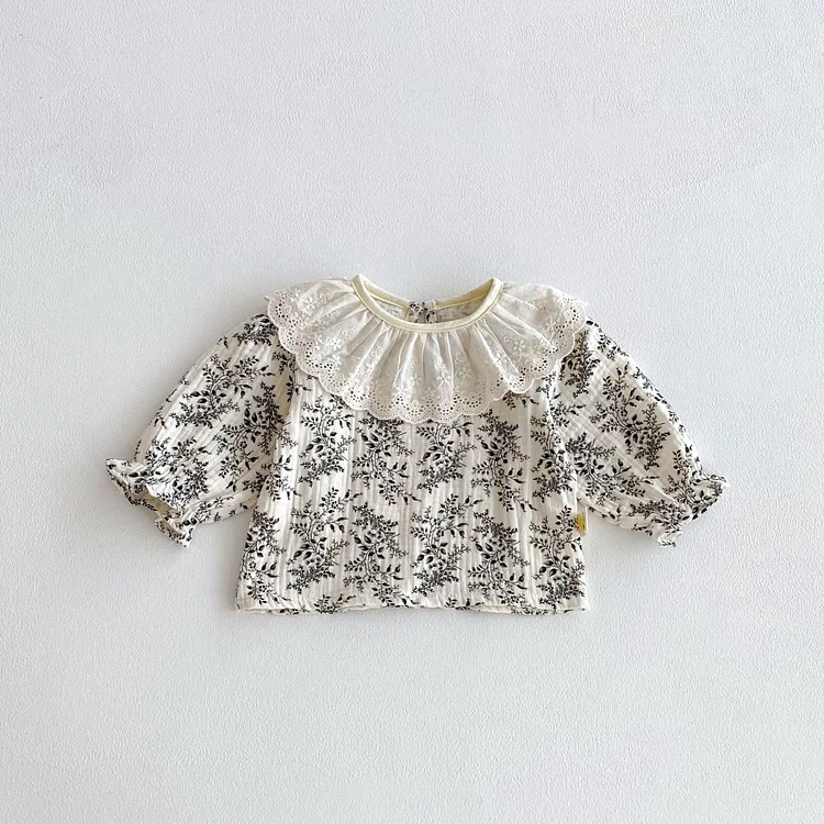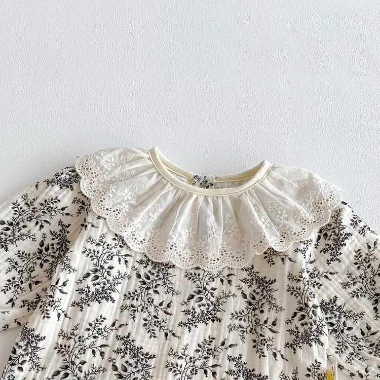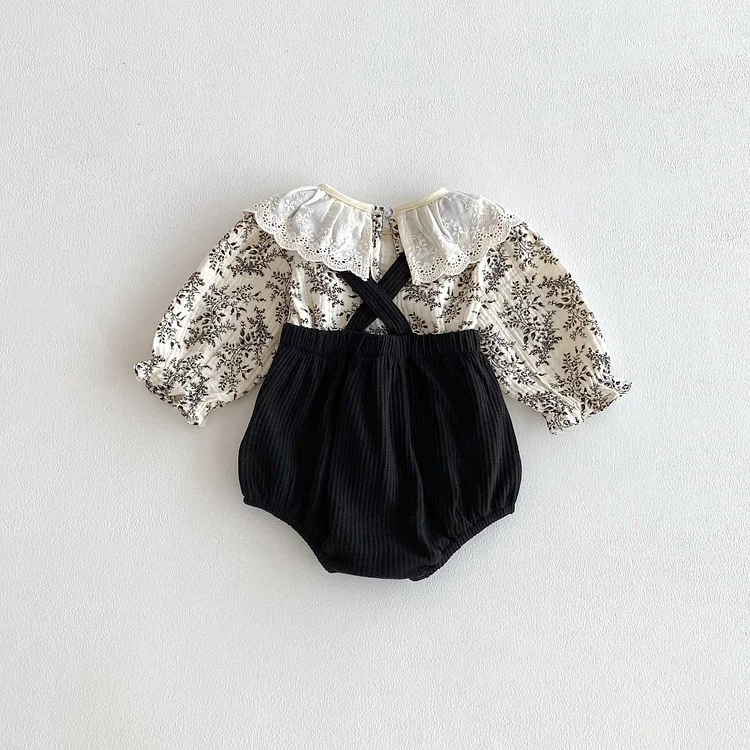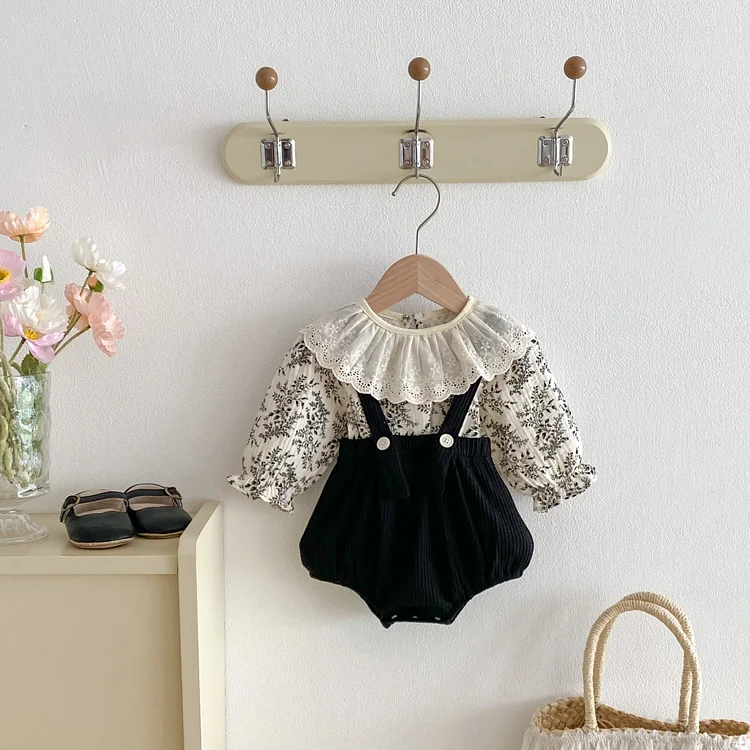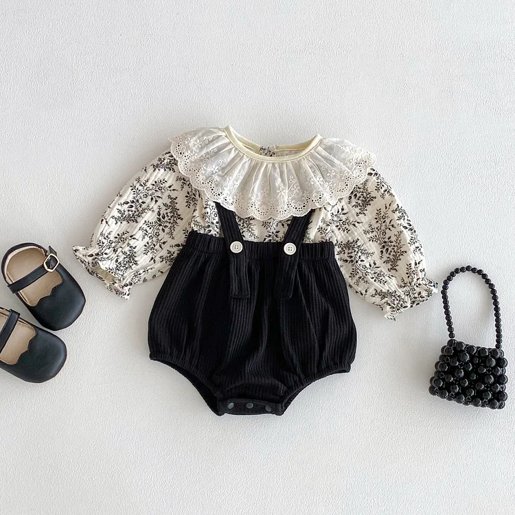 【66-100cm】 レース襟 トップス & サロペット ロンパース 2点セット