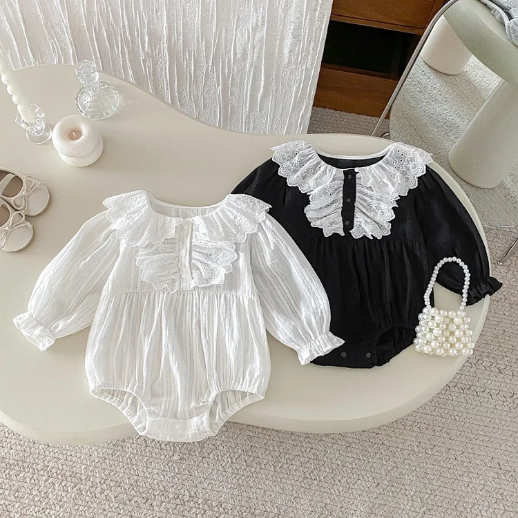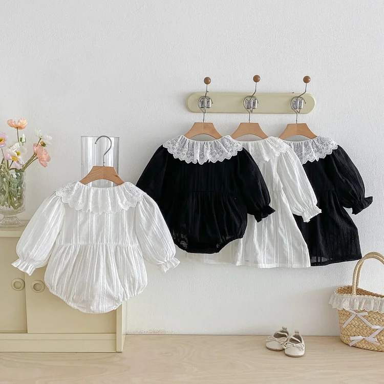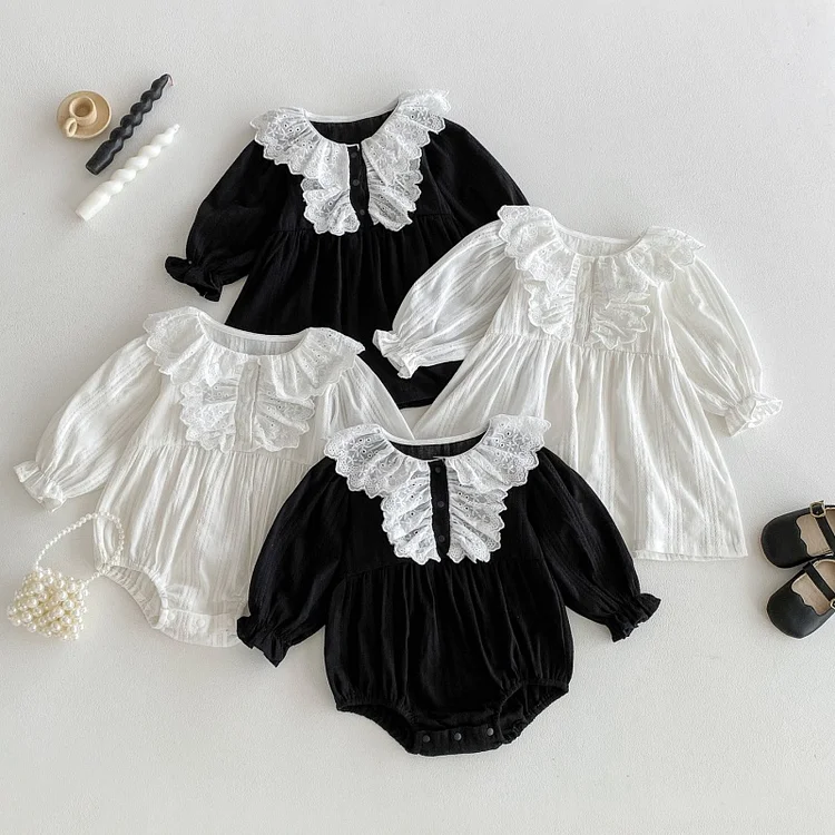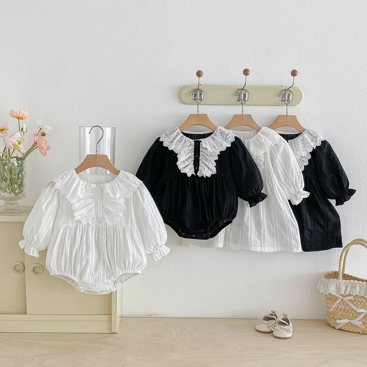 【66-110cm】 レース襟 ロンパース or ワンピース