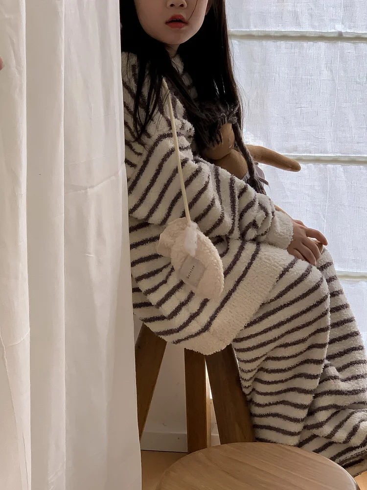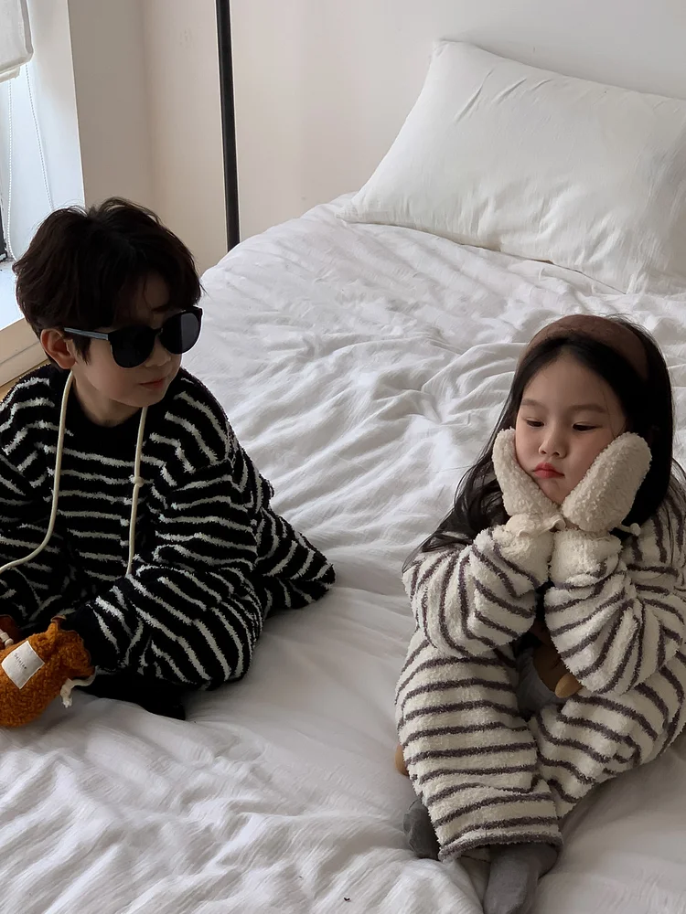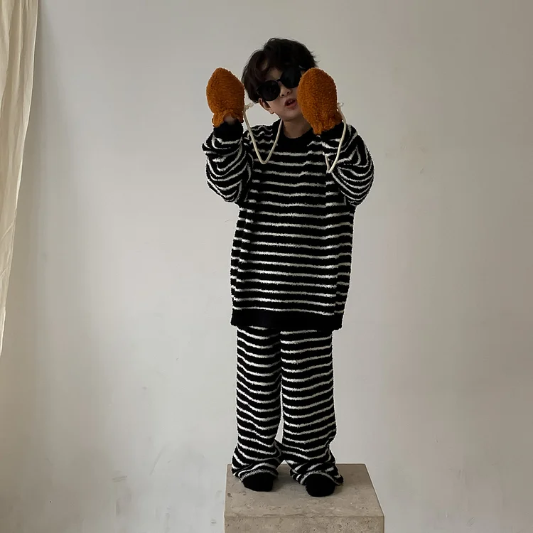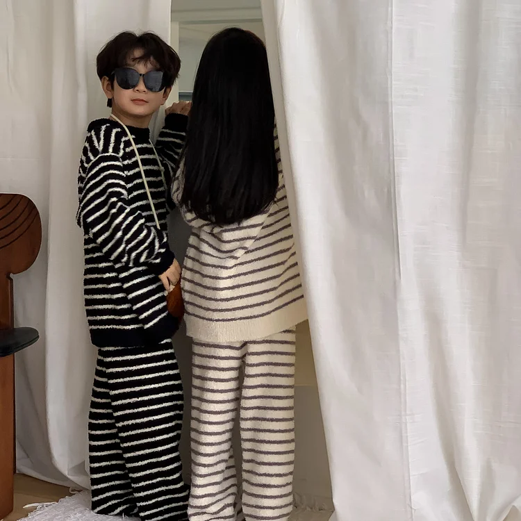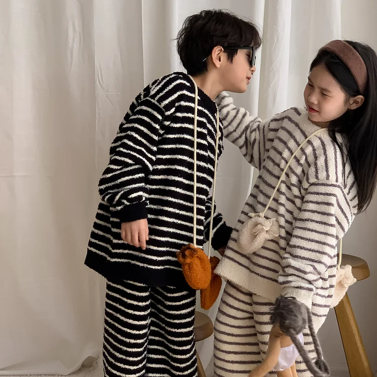 【90-150cm】 ボアボーダー ルームウエア セットアップ