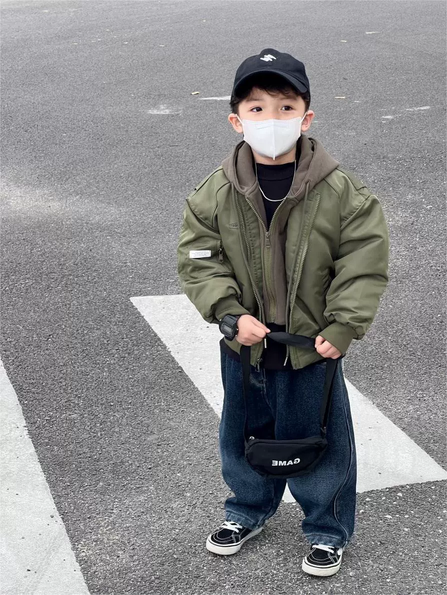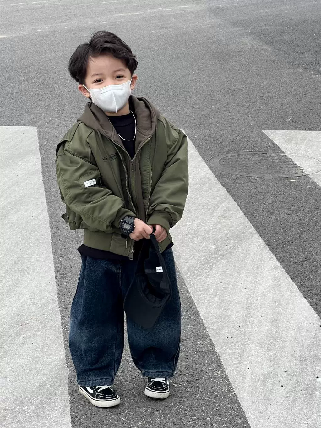 【90-150cm】 カッコイイ レイヤード フード付き ジャケット