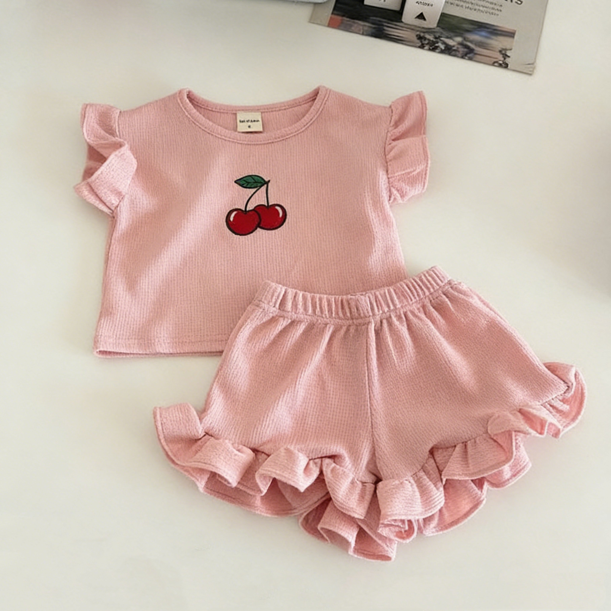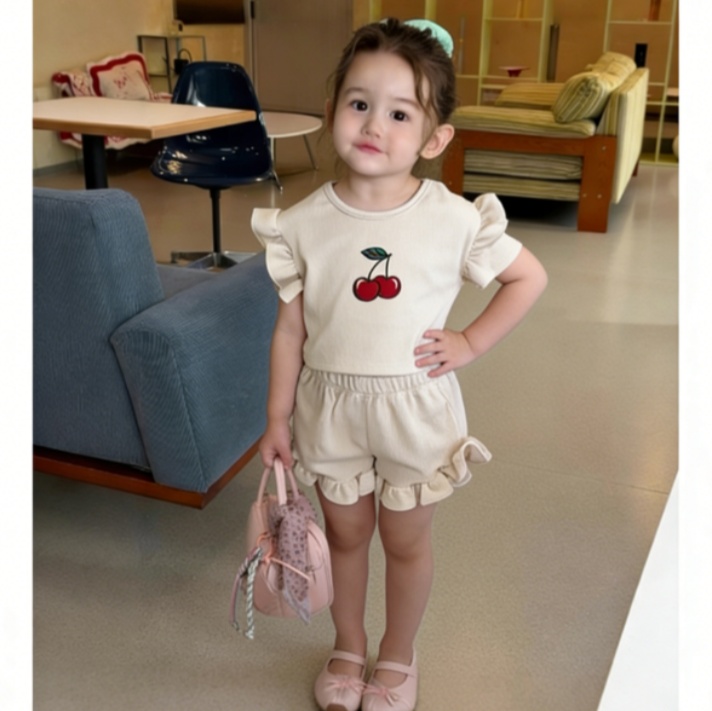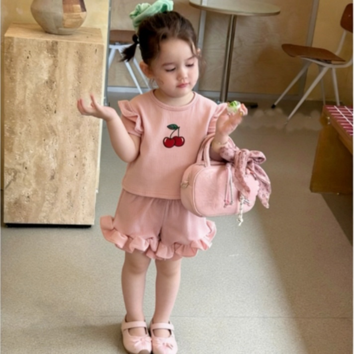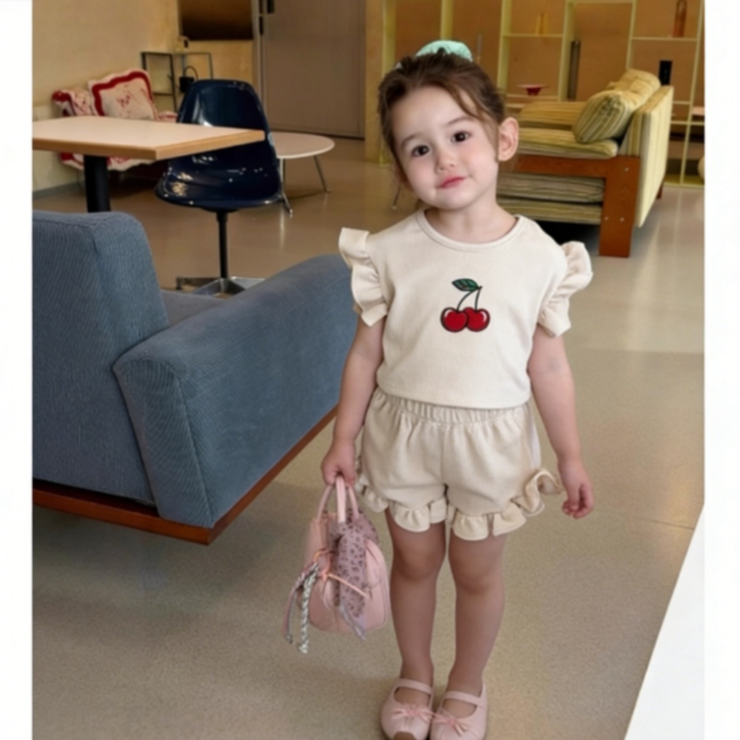 【80-130cm】ベビー 女の子 フリルデザイン 半袖 セットアップ