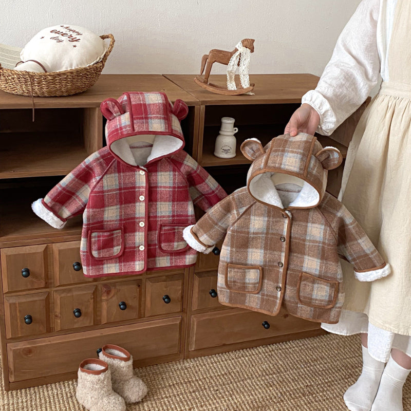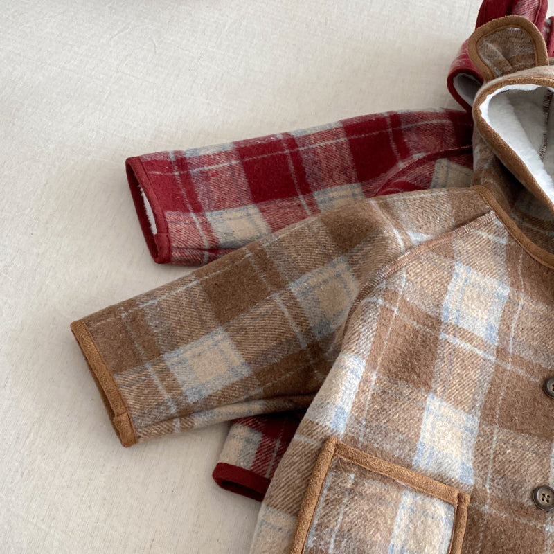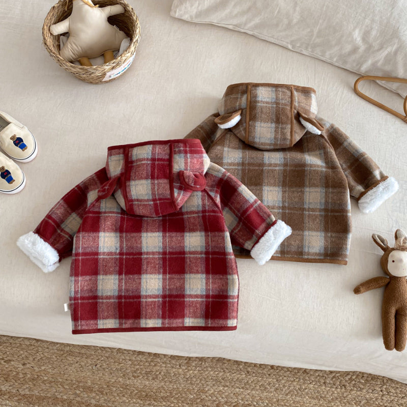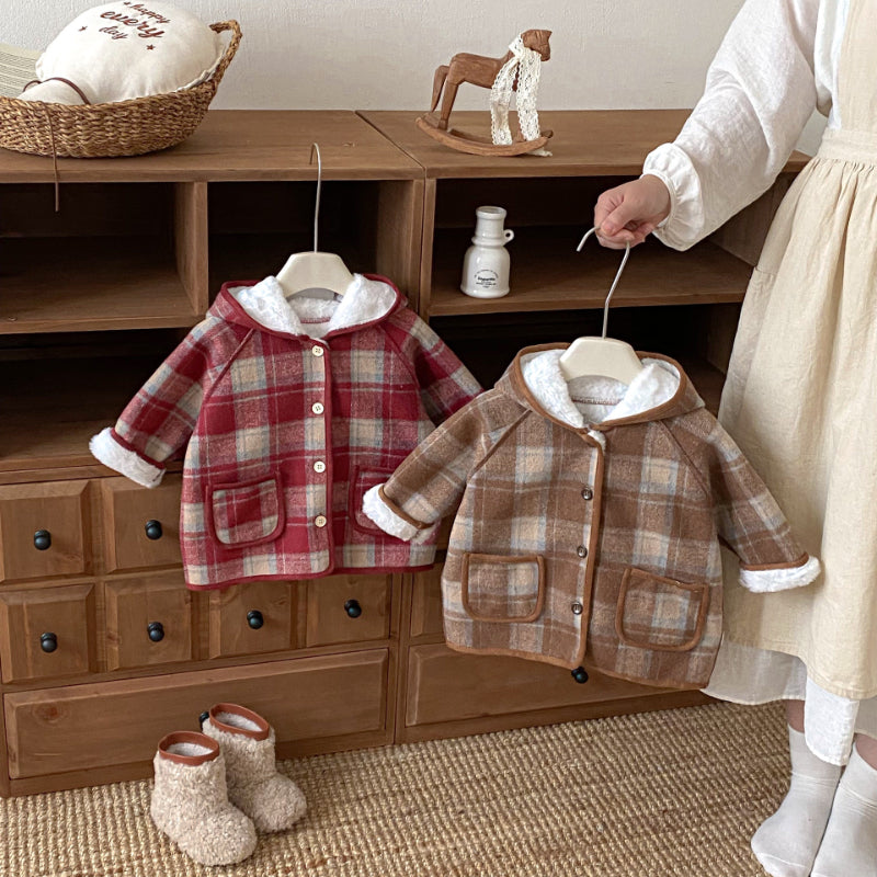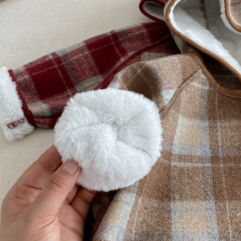 【73-120cm】 チェック柄 フード付き モコモコ アウター