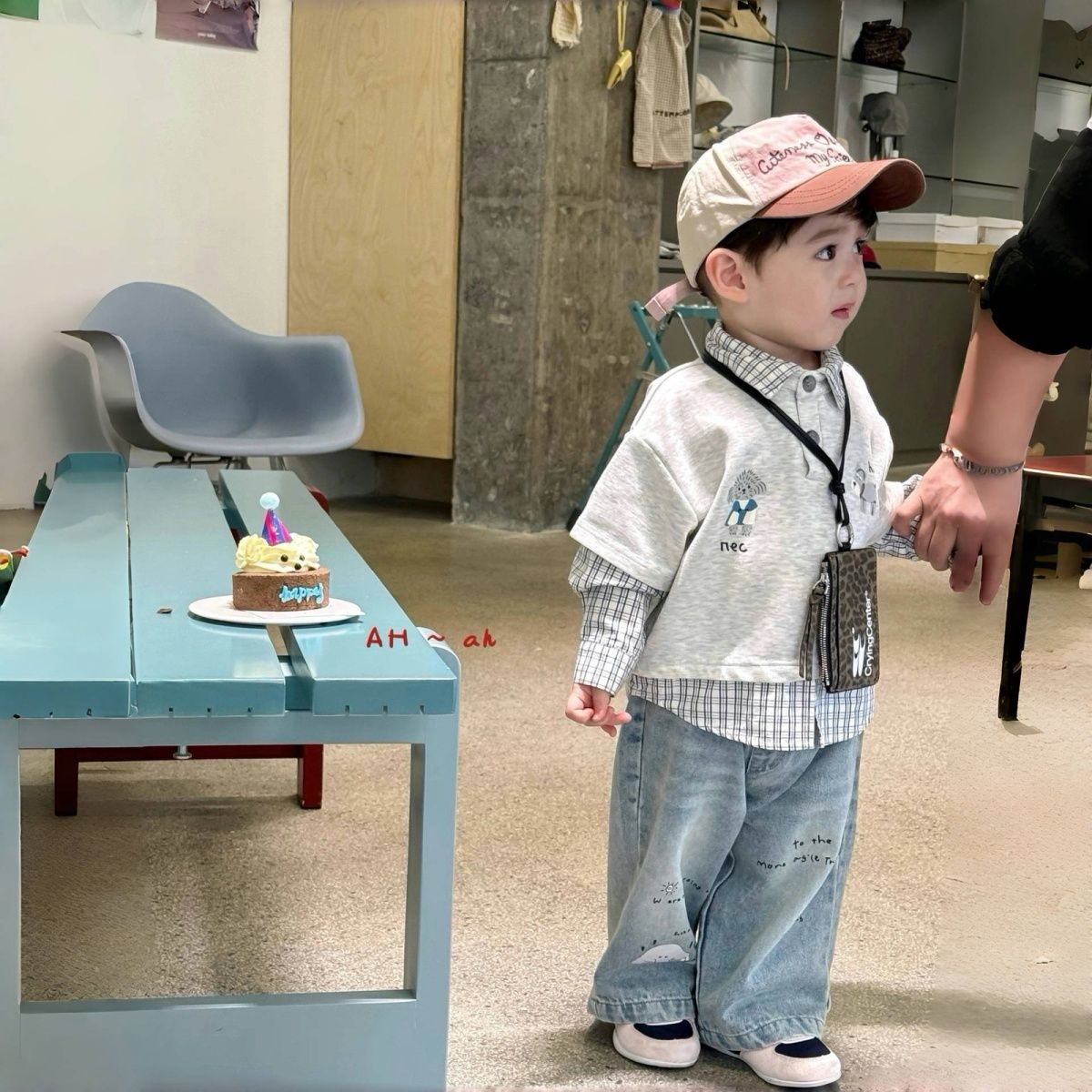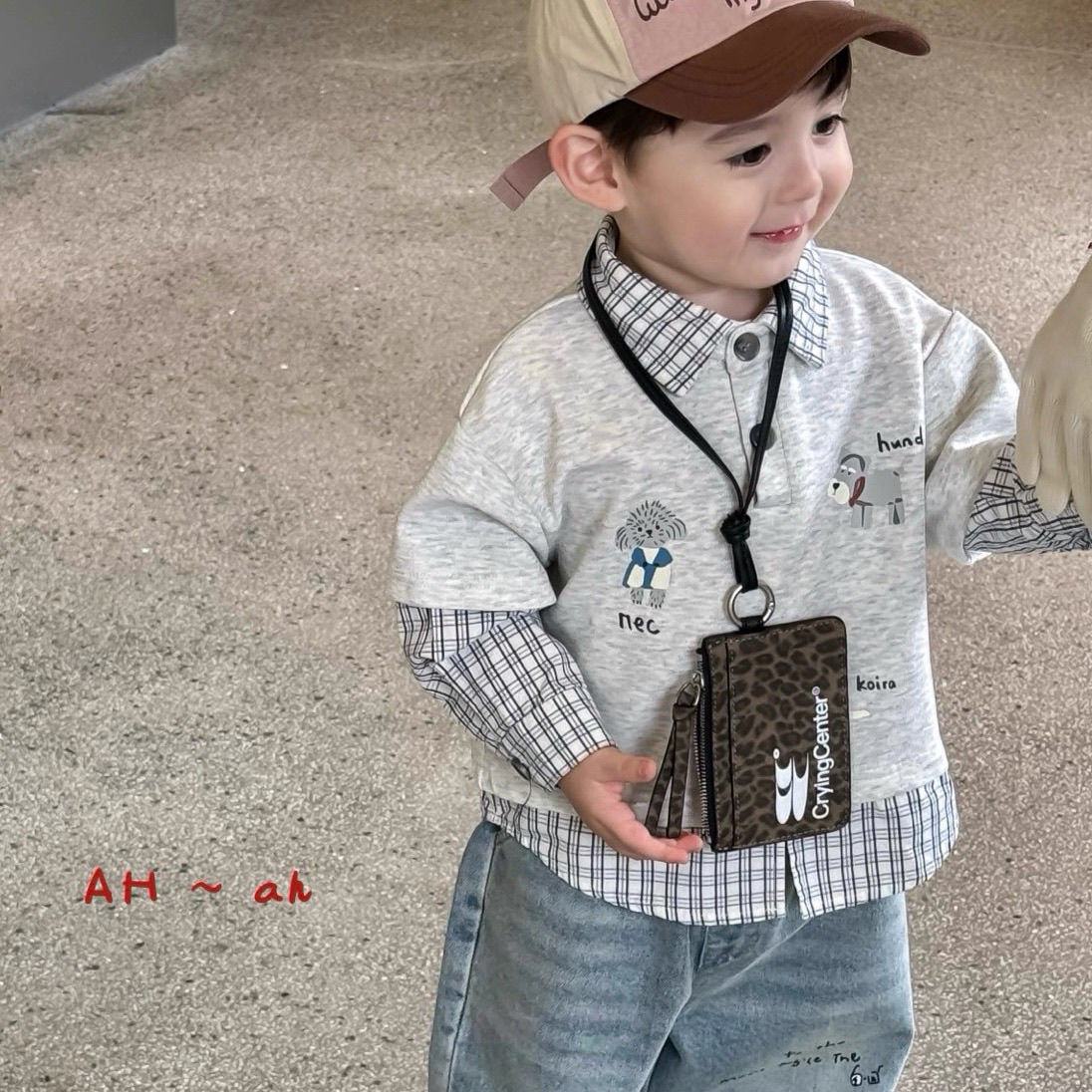 【80-140cm】レイヤード プリント チェック柄 トップス/デニムパンツ