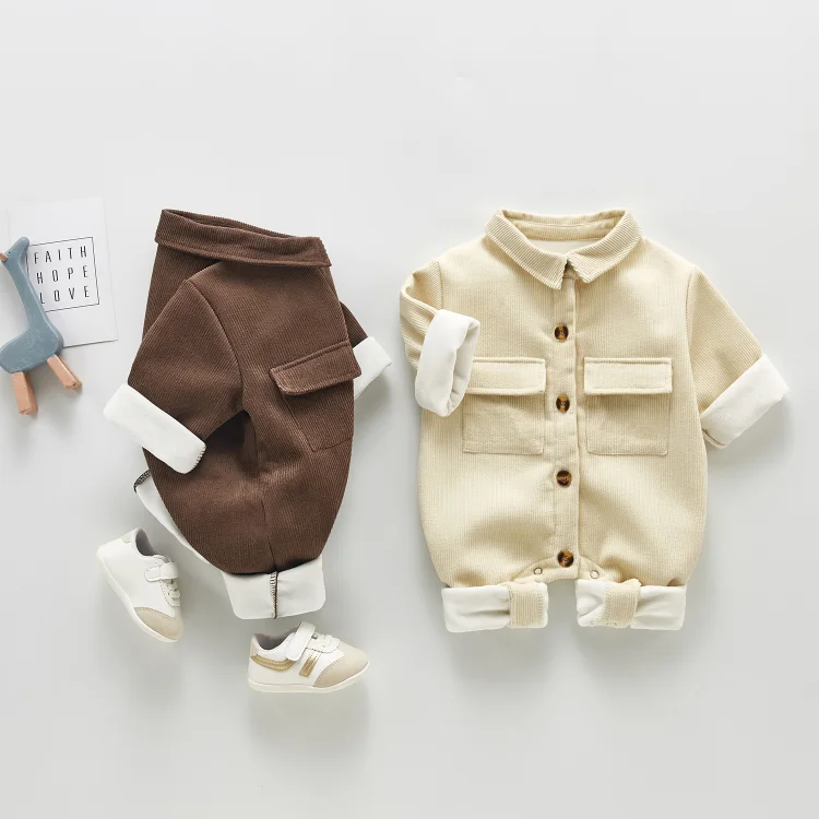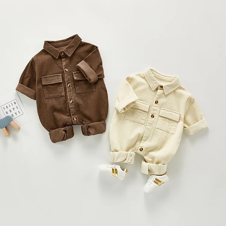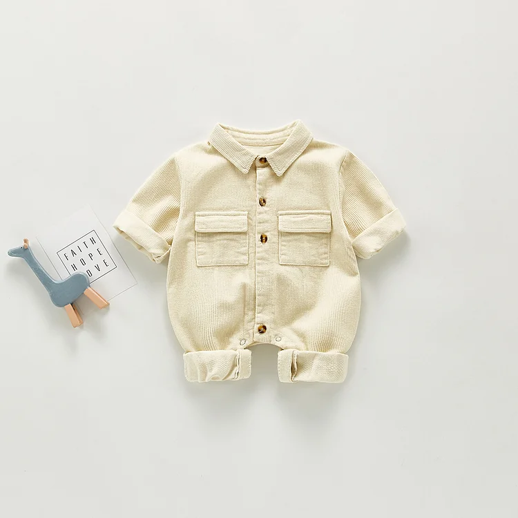 【66-100cm】ノーカラーコーデュロイ オールインワン