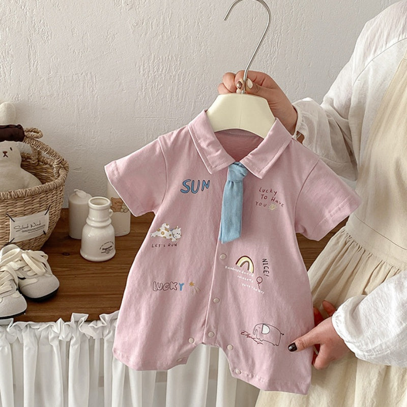 【66-90cm】カバーオール ベビー カジュアル ネクタイ付き