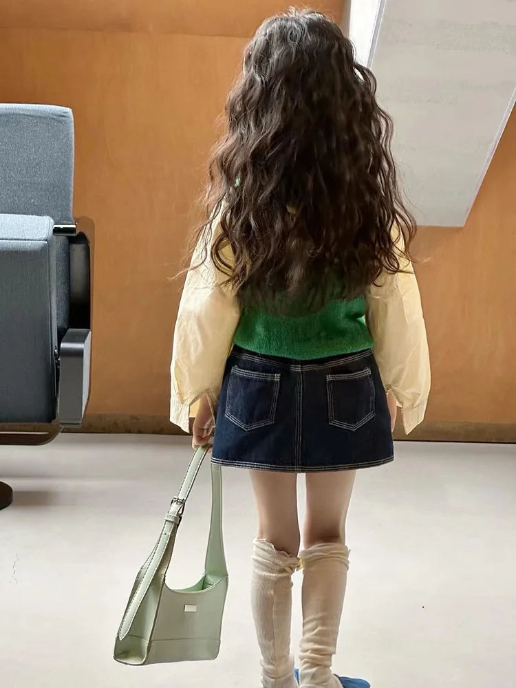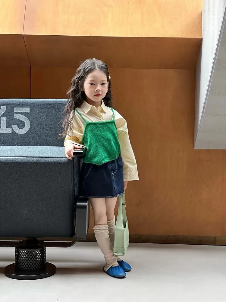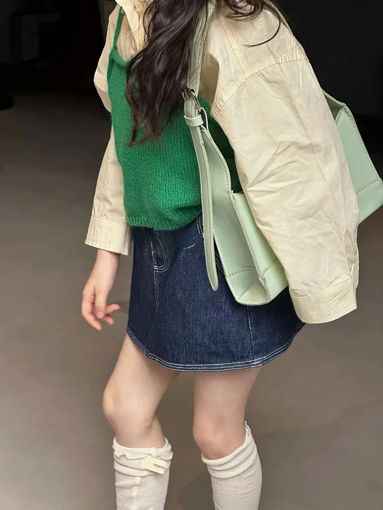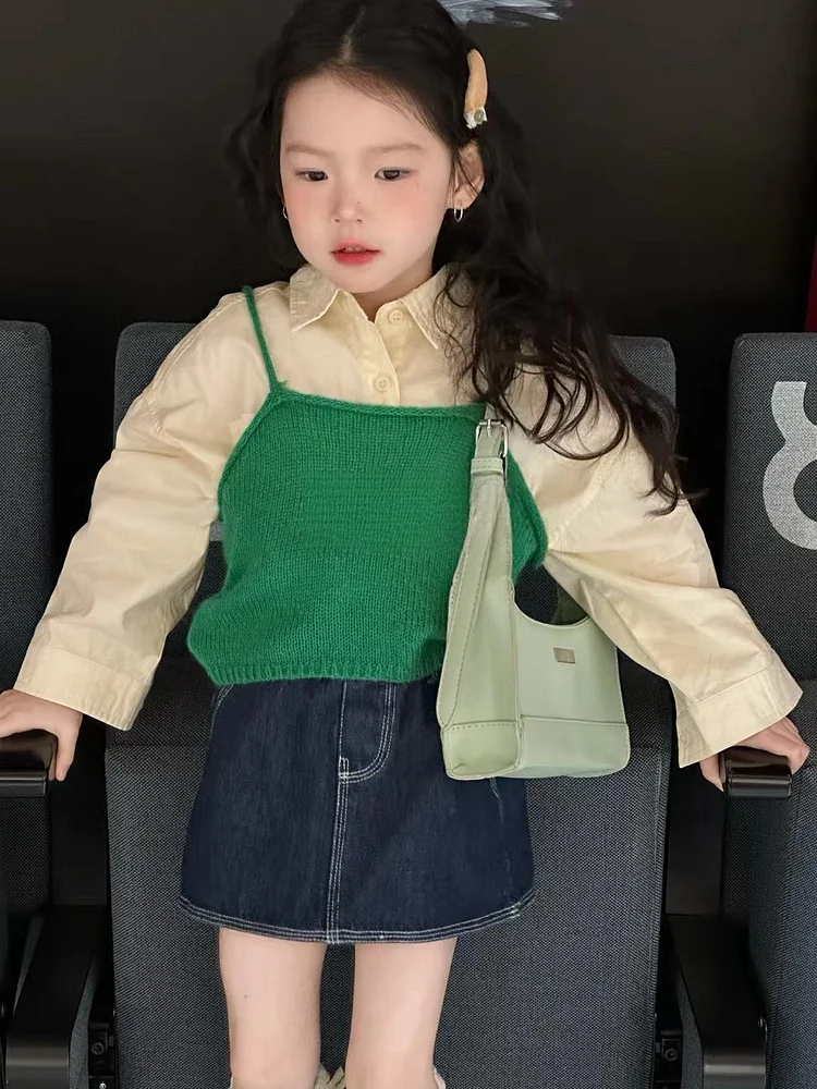 【90-140cm】 グリーンキャミOR シャツ ORデニム スカート