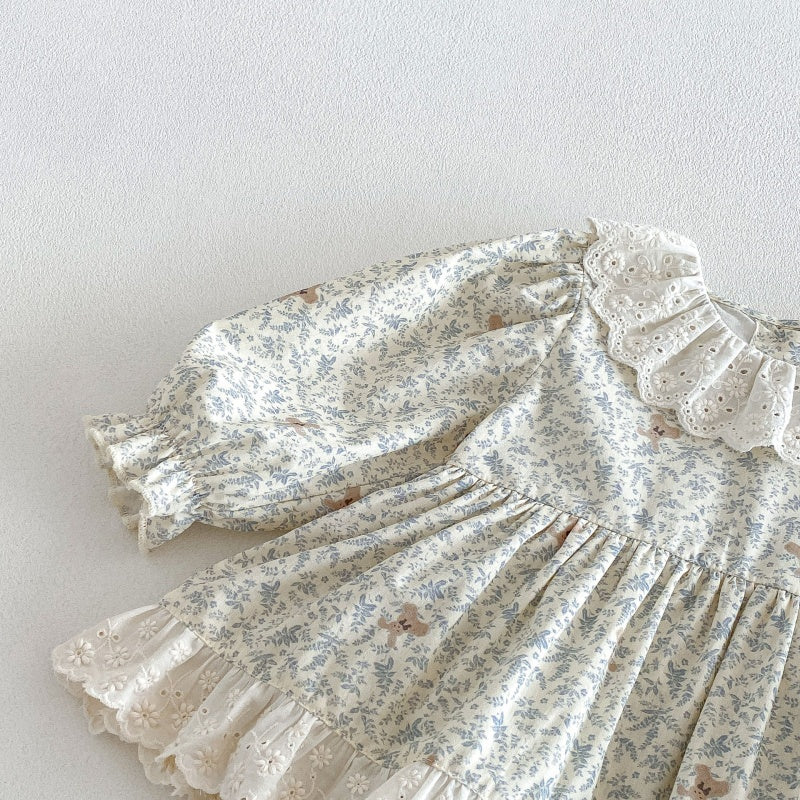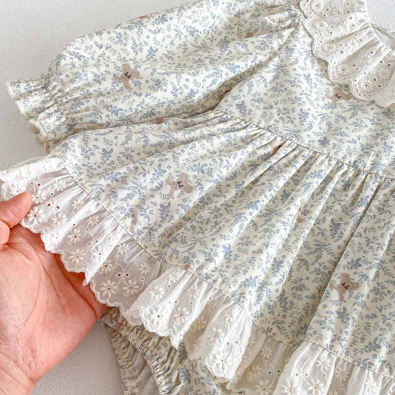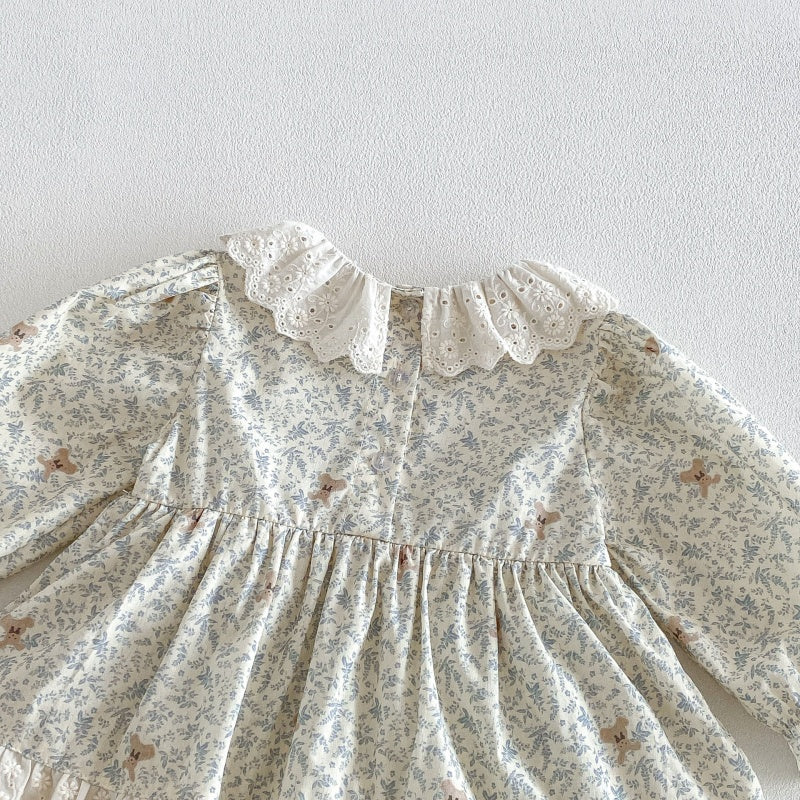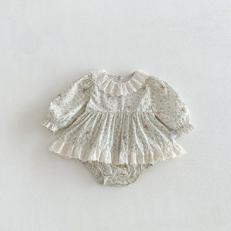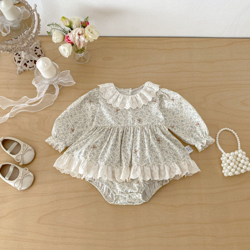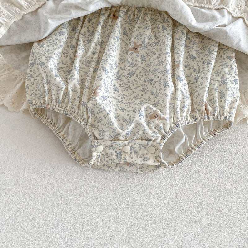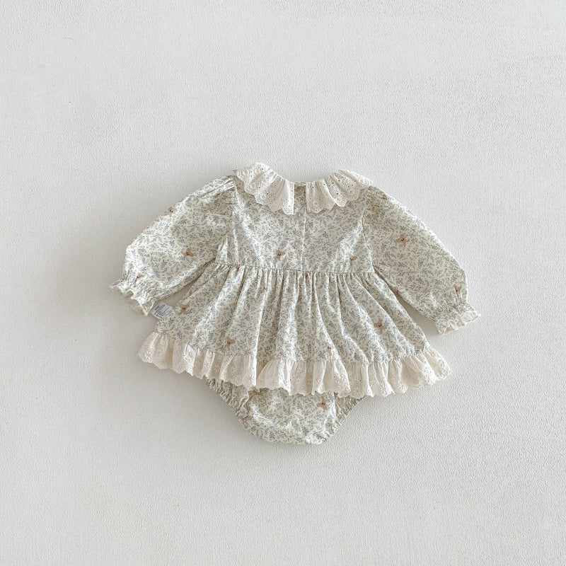 【66-90cm】ロンパース ベビー 女の子 丸襟 小花柄