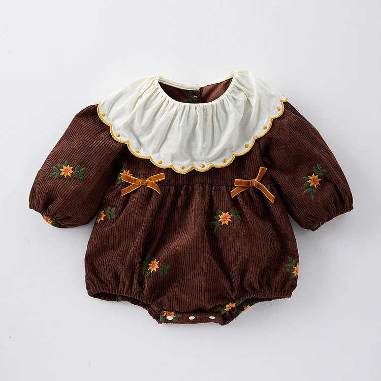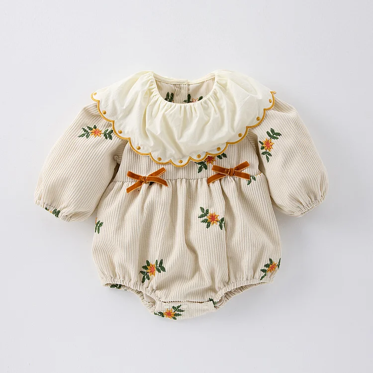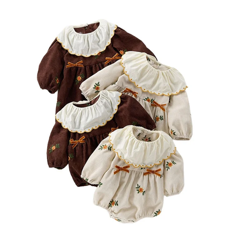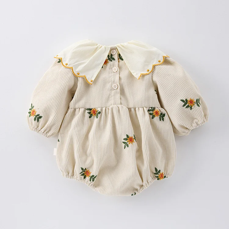【66-100cm】 刺繍 花柄 コーデュロイ ロンパース
