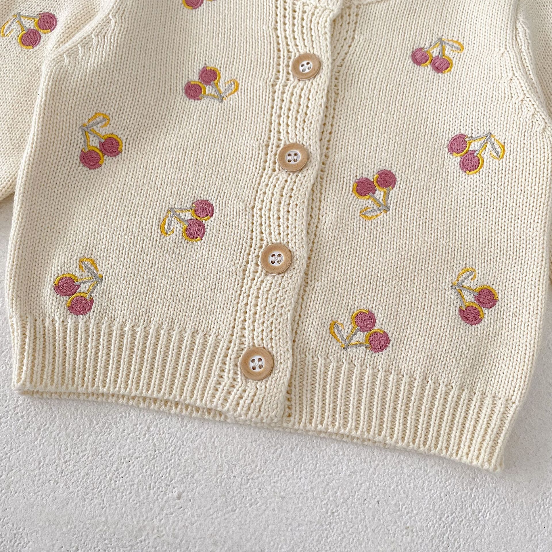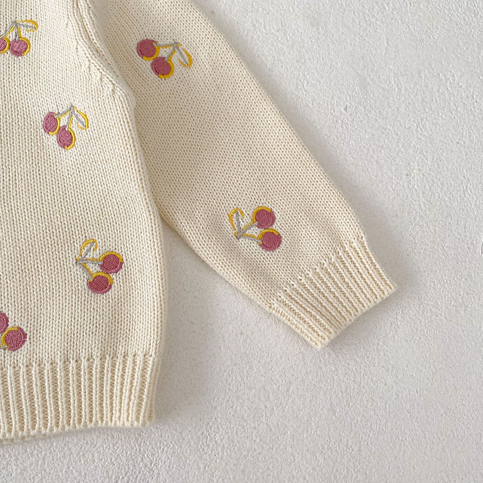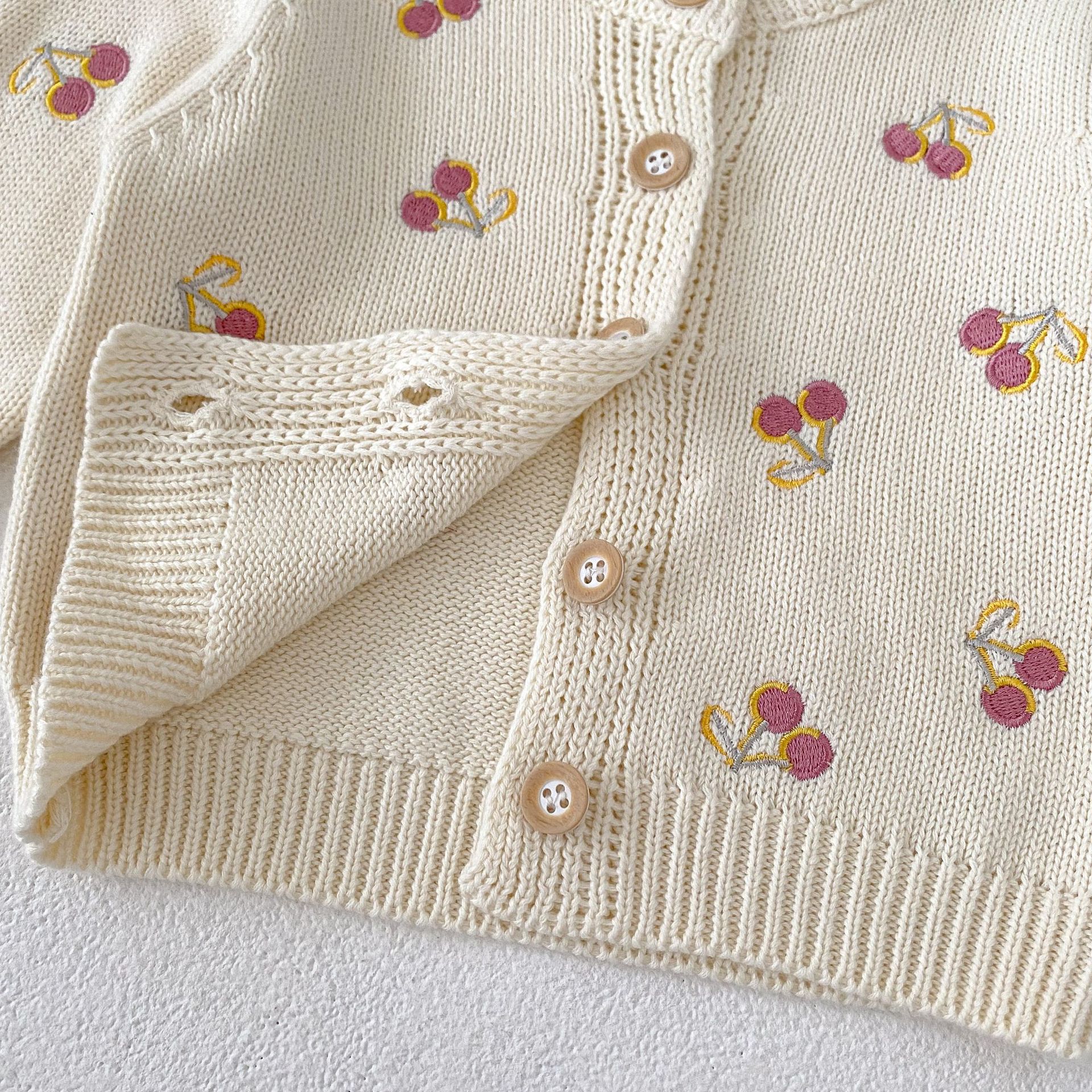 【66-100cm】ニット カーディガン チェリー柄 刺繍