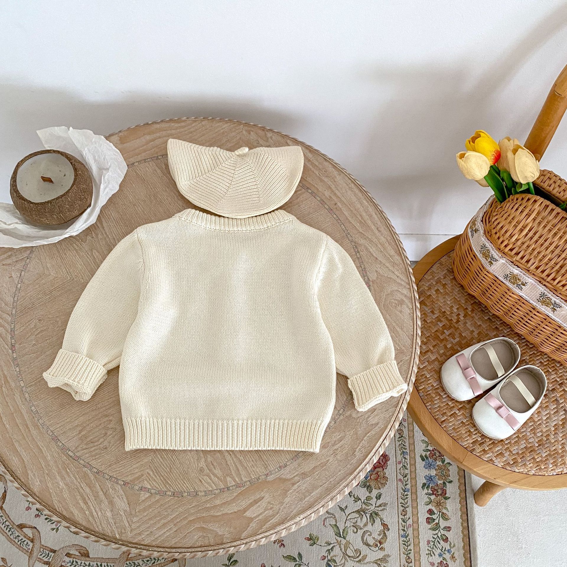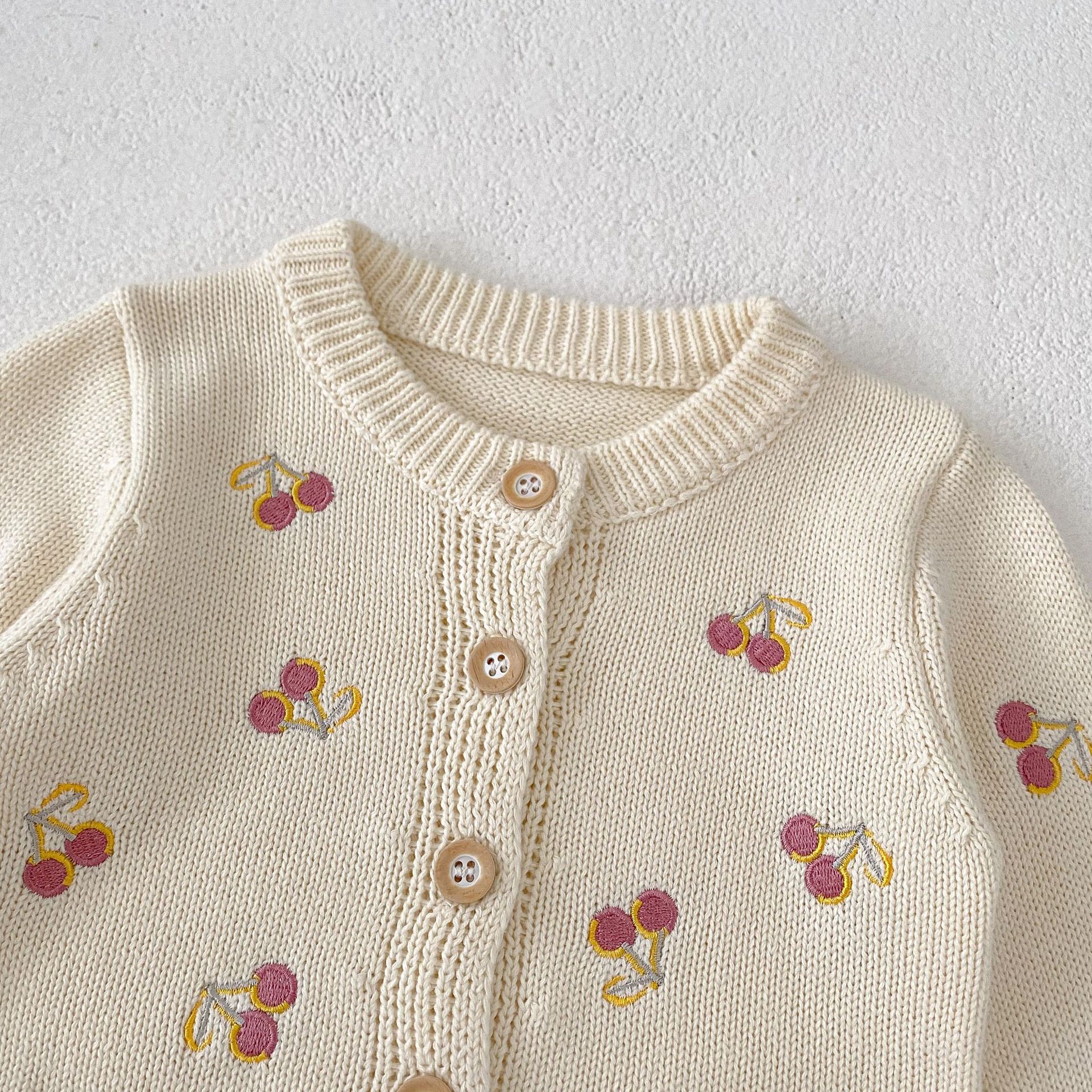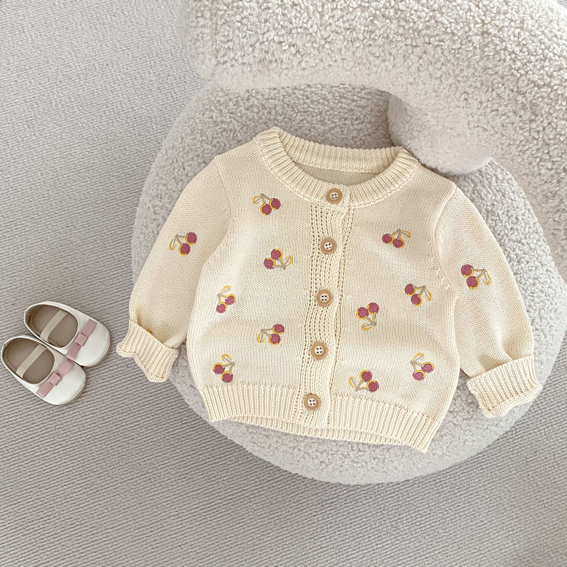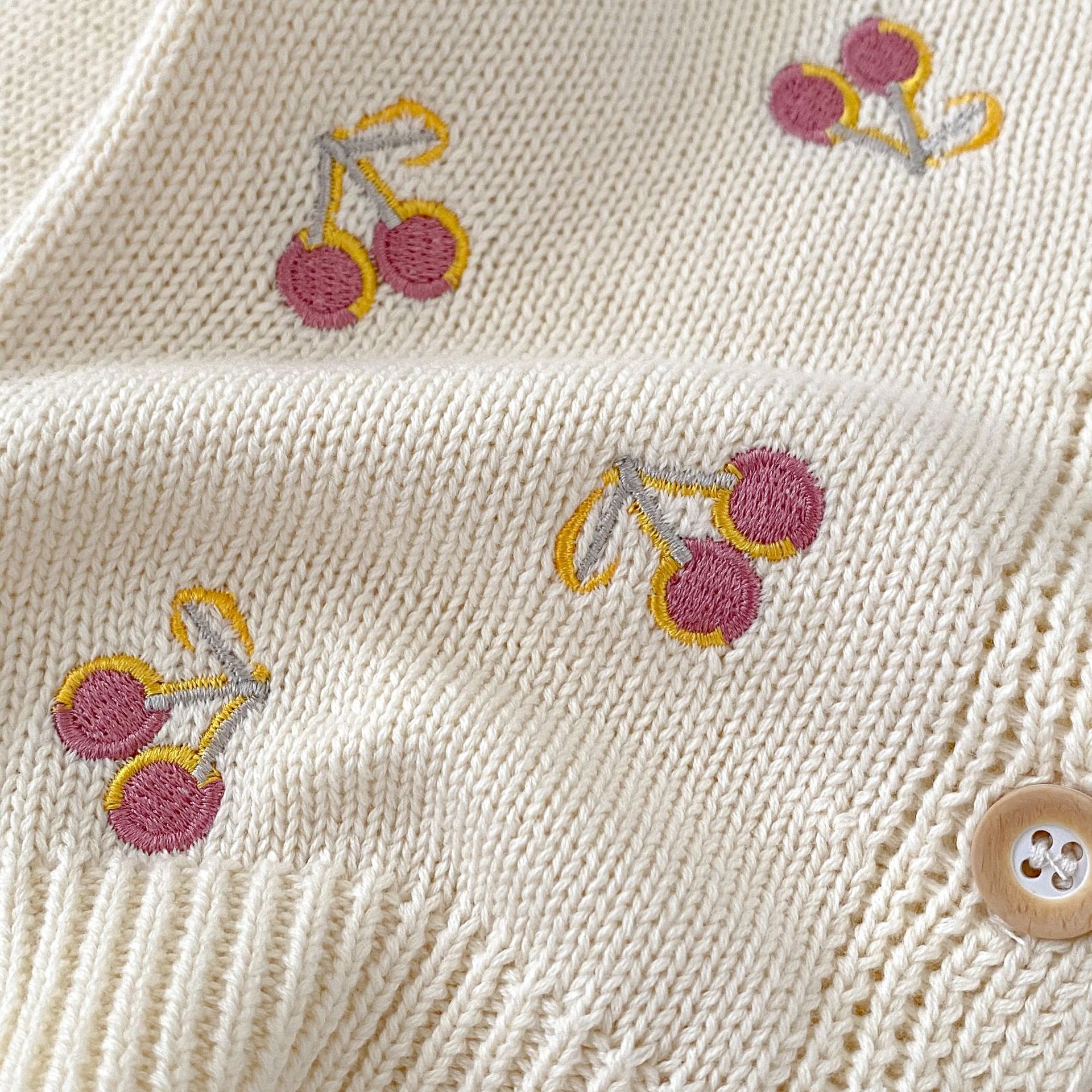 【66-100cm】ニット カーディガン チェリー柄 刺繍