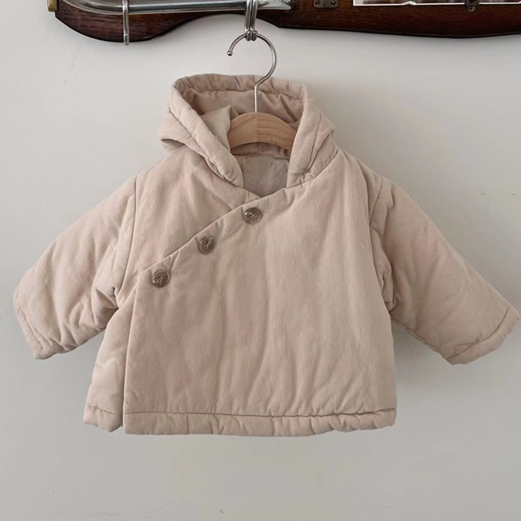 【73-100cm】韓国風 厚手 暖かい 帽子付き コート