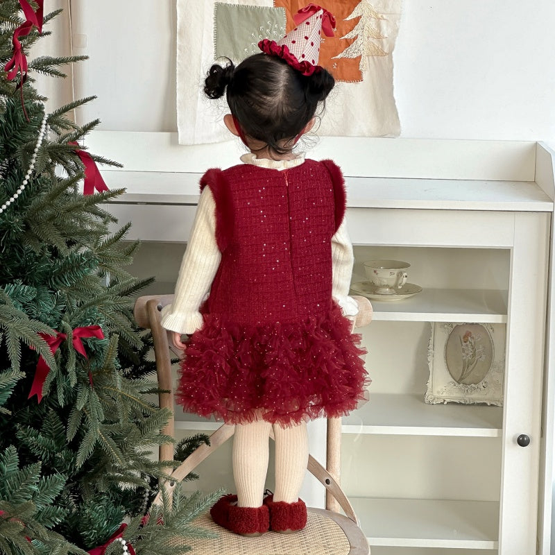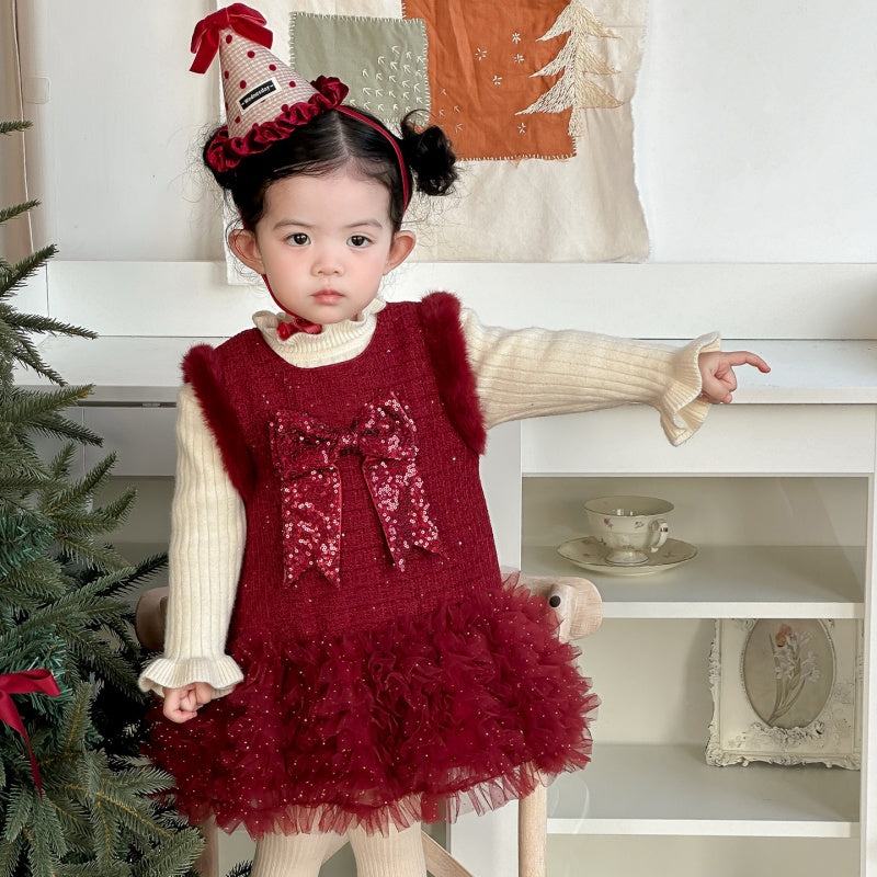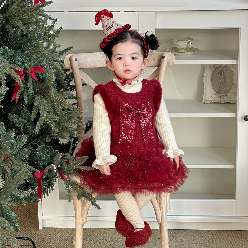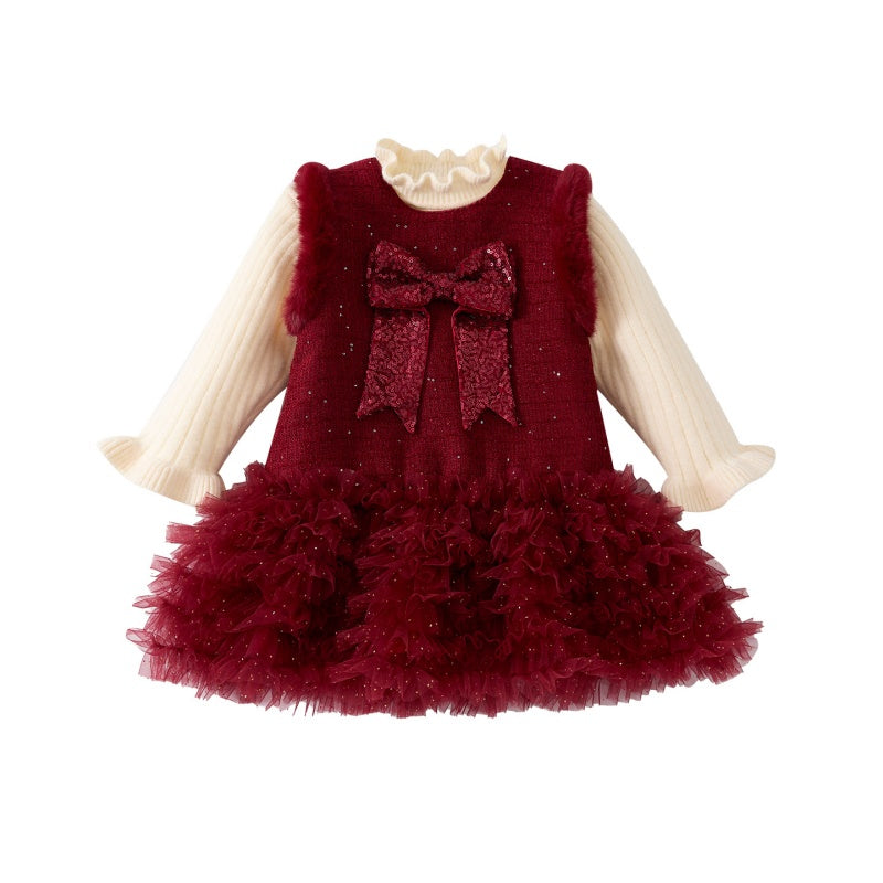 【73-100cm】 蝶結び チュール 厚手 ワンピース