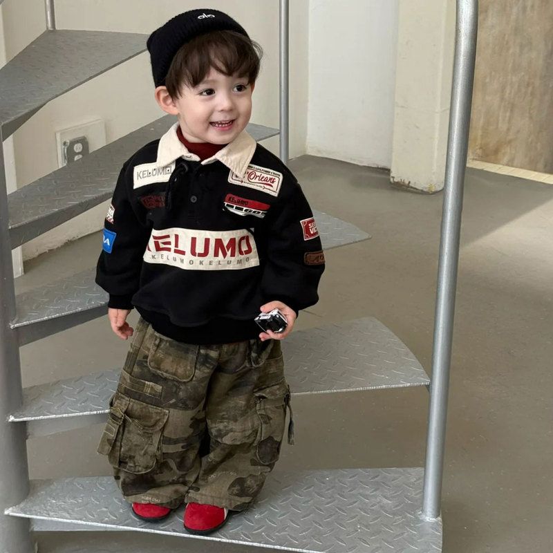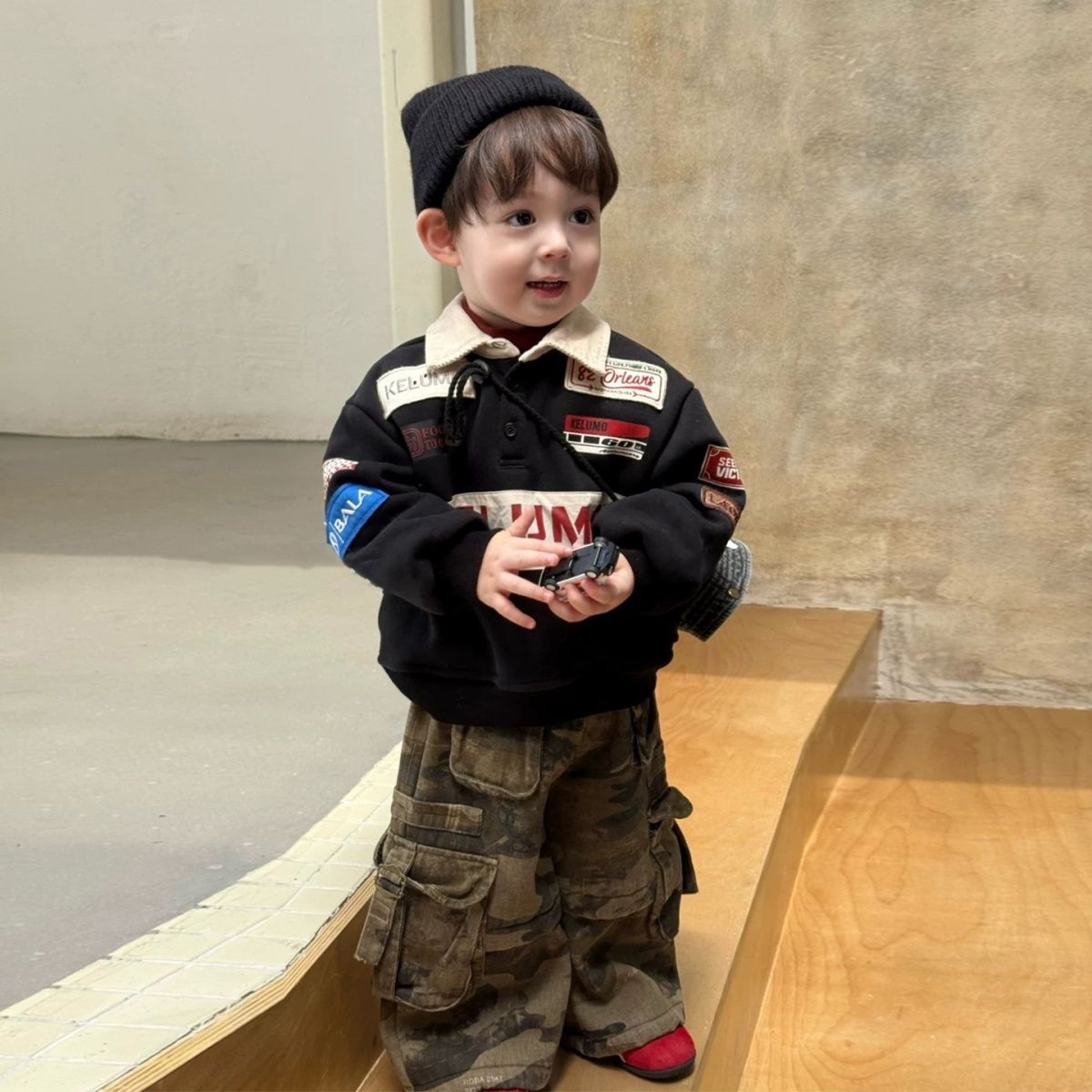 【80-130cm】プリント カジュアル 裏起毛 トレーナー/パンツ