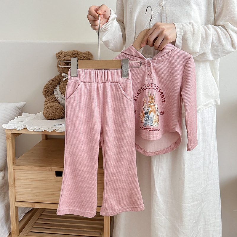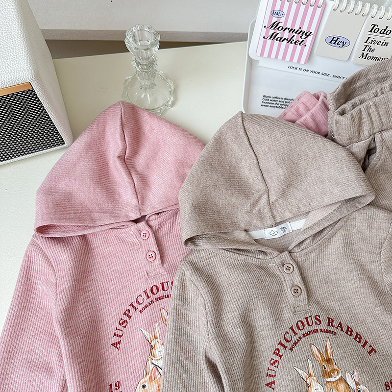 【90-150cm】女の子 セットアップ ウサギ柄 カジュアル
