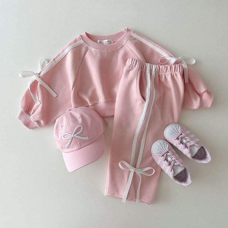 【80-130cm】セットアップ 可愛い リボン付き 人気 おしゃれ 二点セット