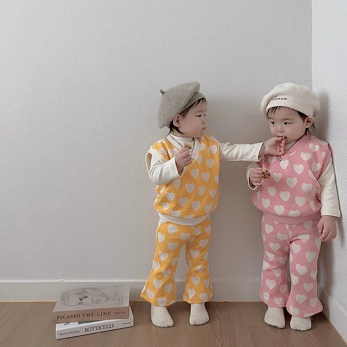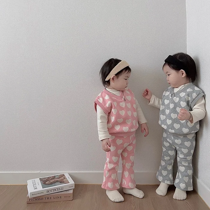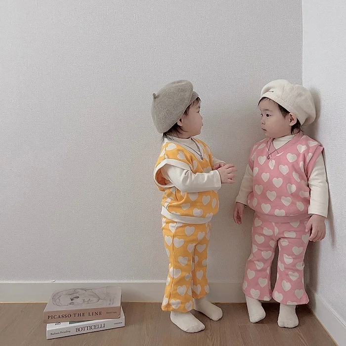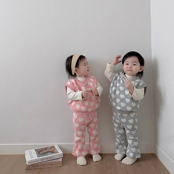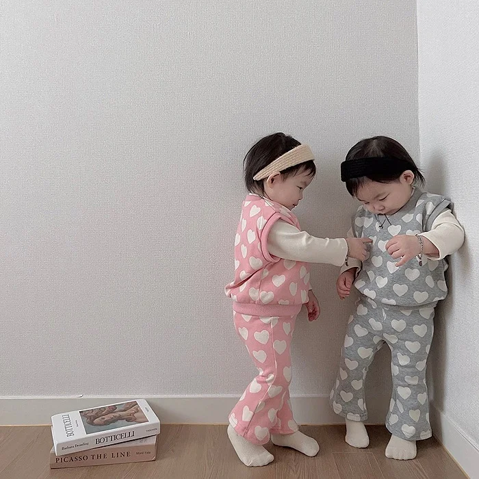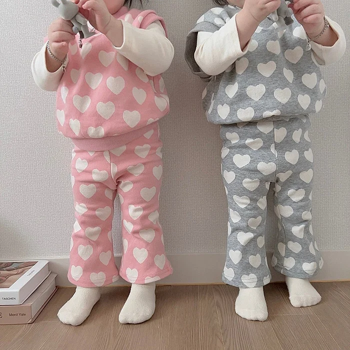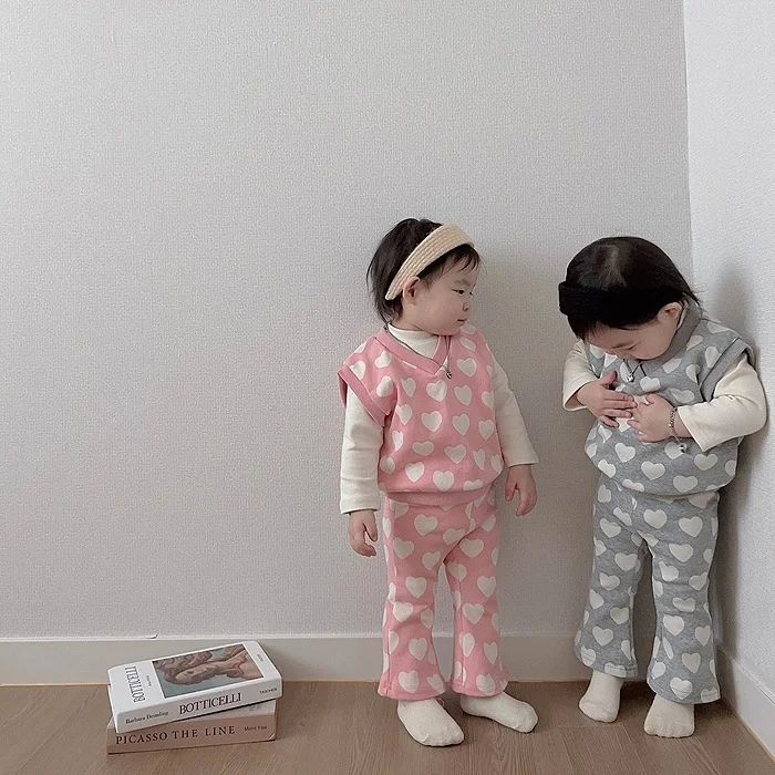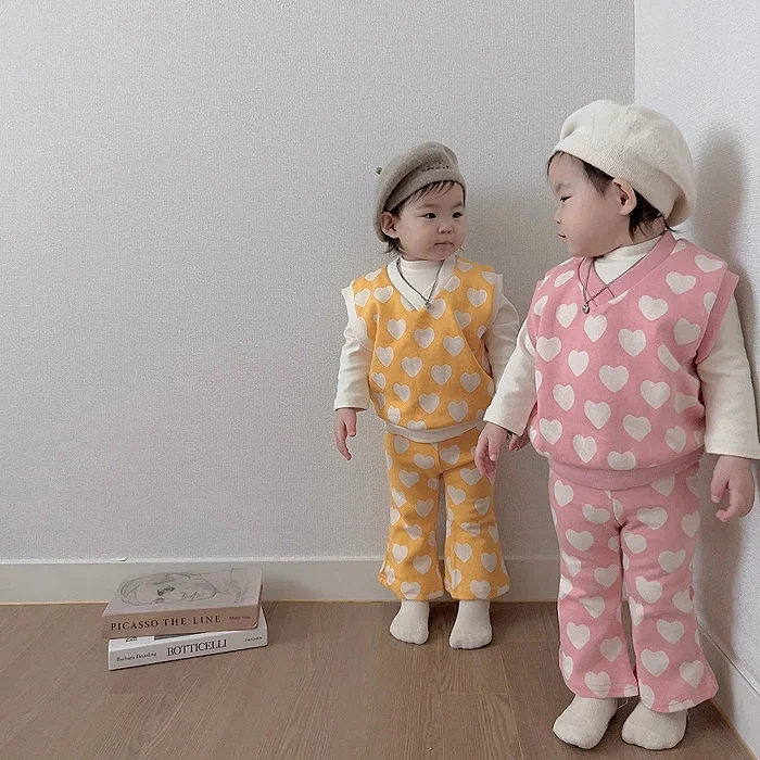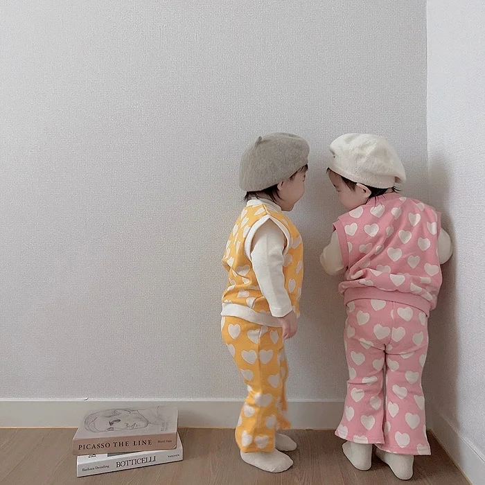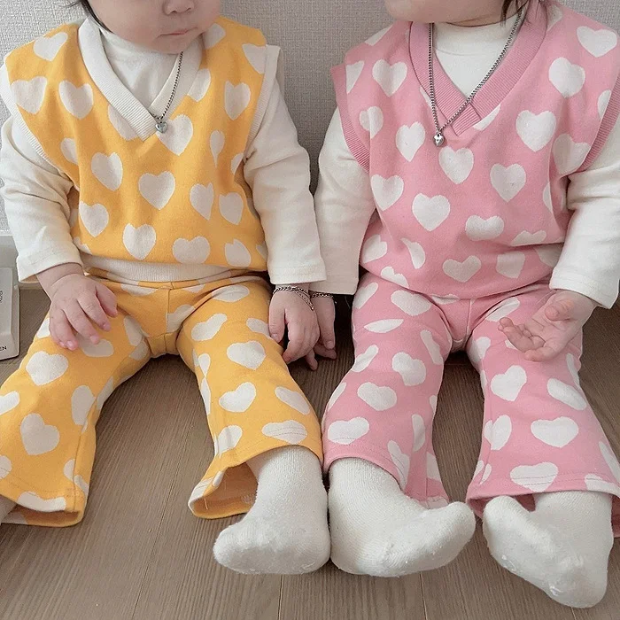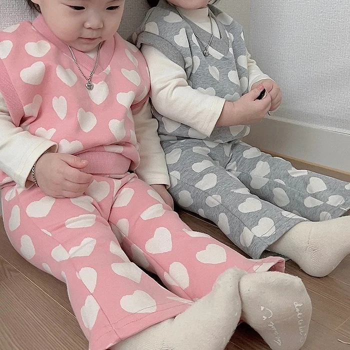 【80-120cm】ハート ベスト + パンツ セットアップ