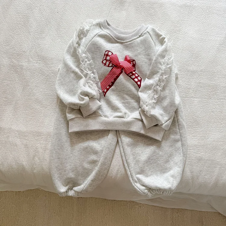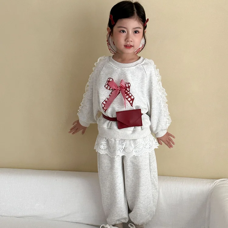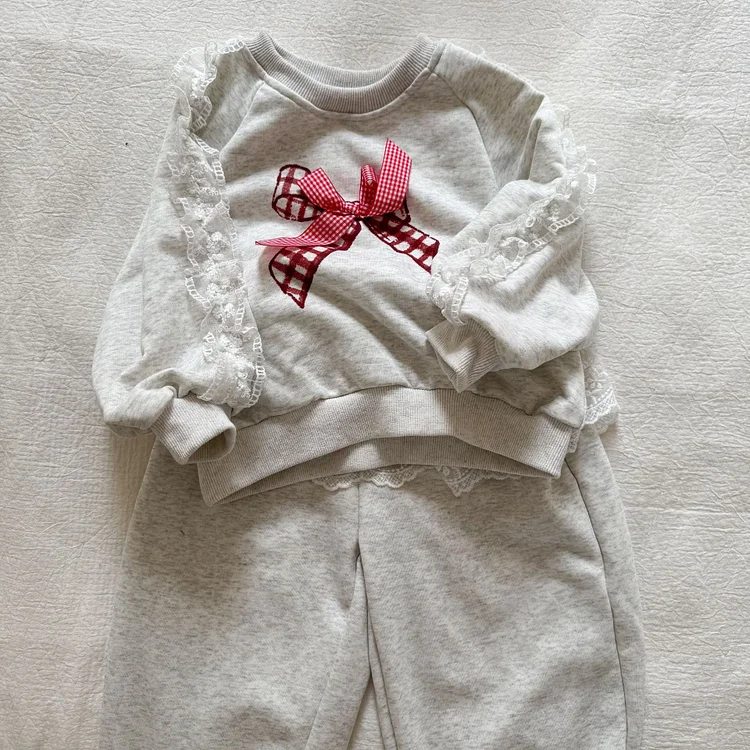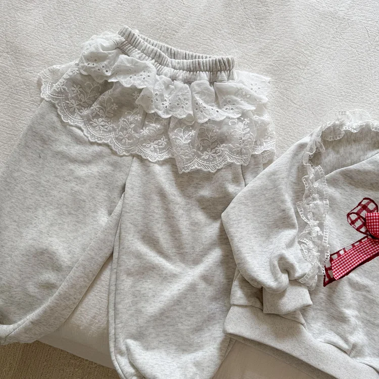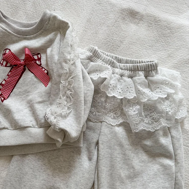 【80-150cm】レースリボン スウェットセットアップ