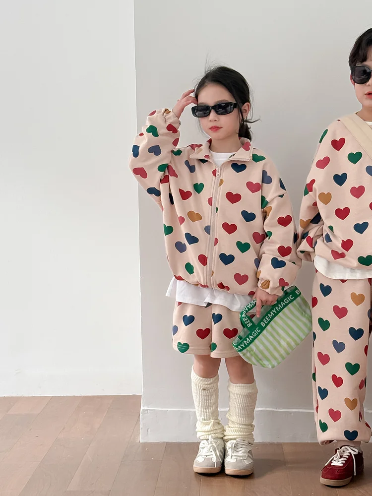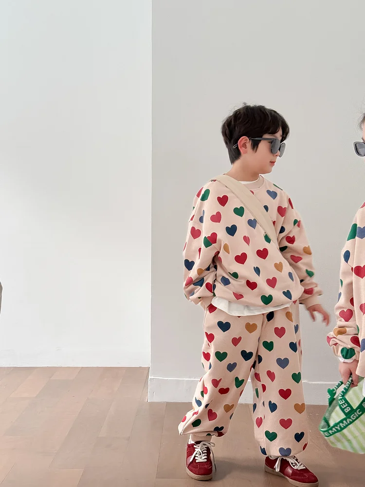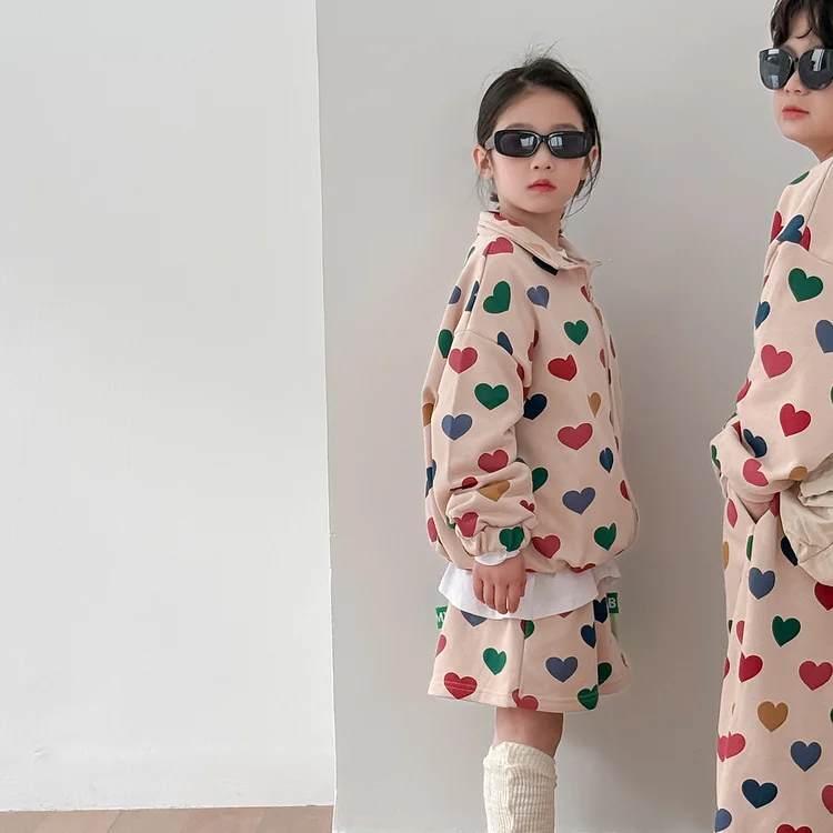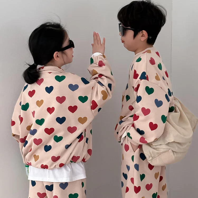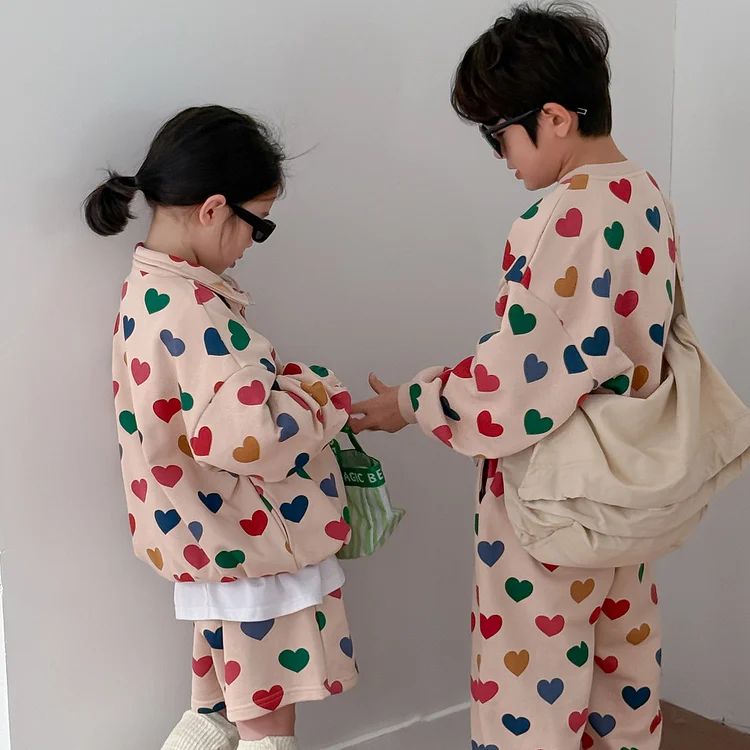 【90-150cm】ハート姉妹兄弟コーデ セットアップ