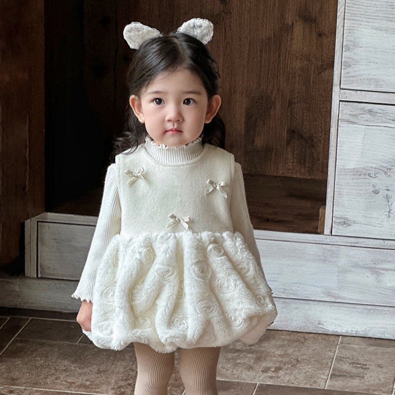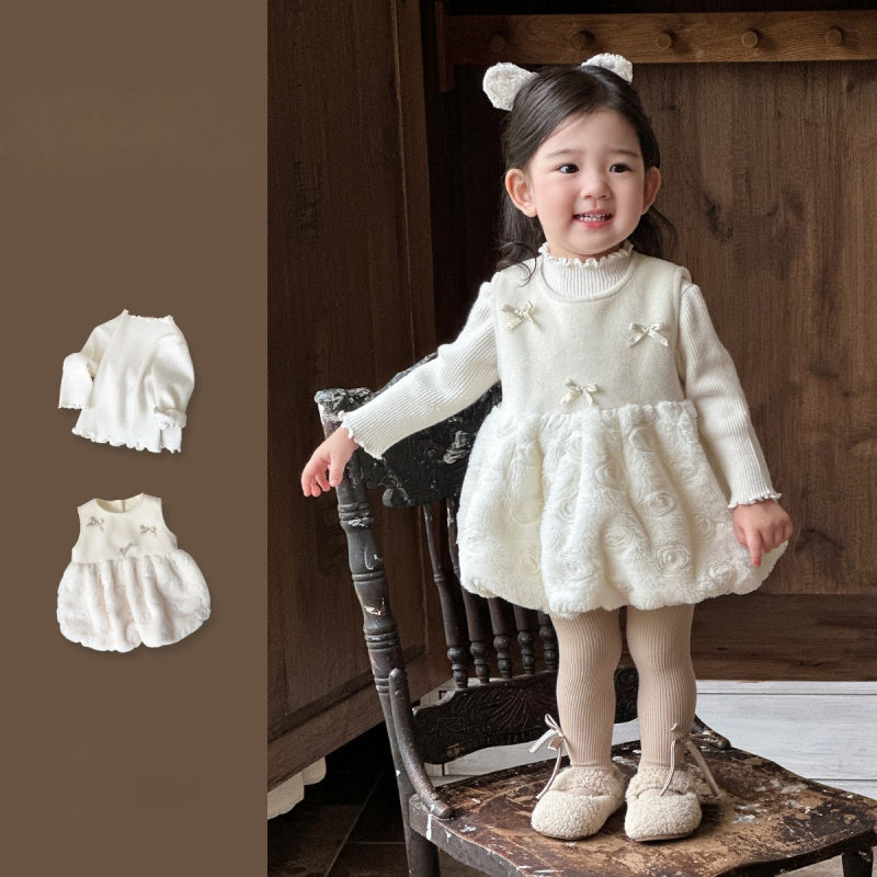 【73-110cm】 韓国風 蝶結び ジャンパースカート