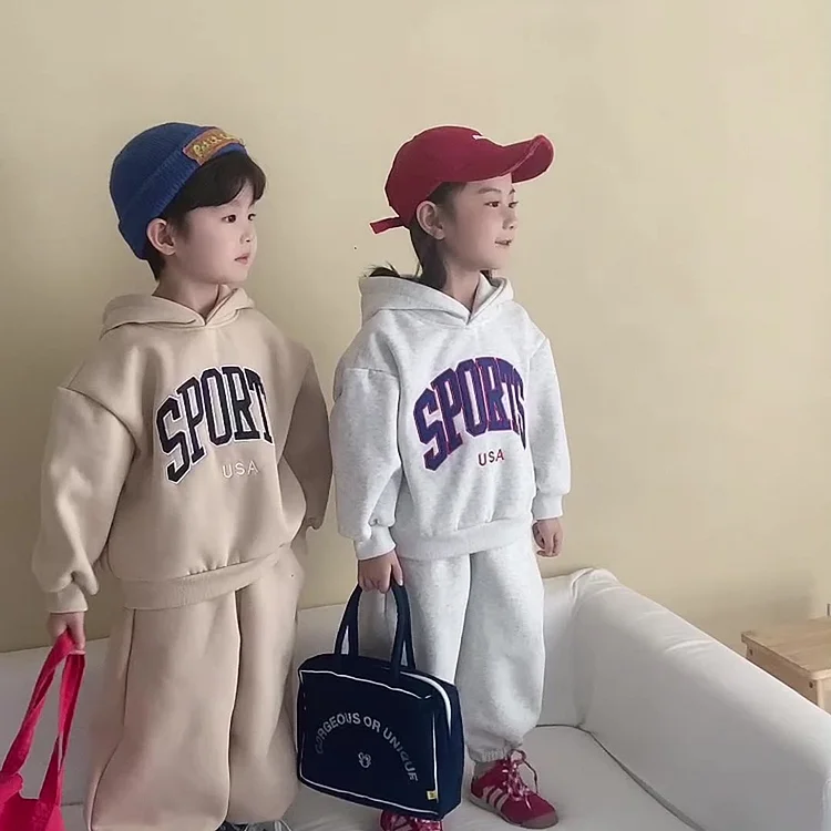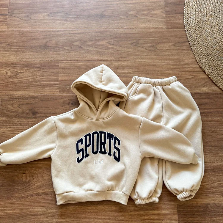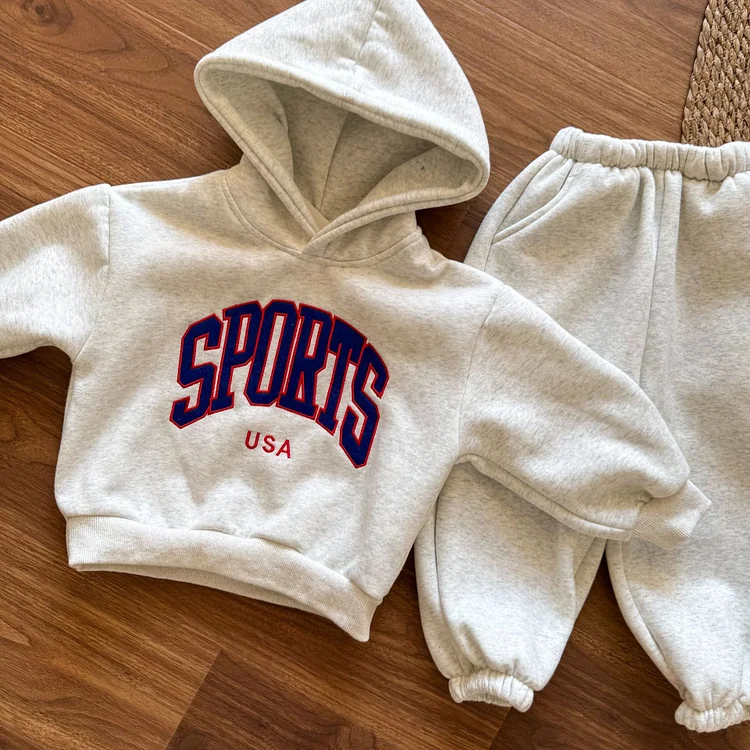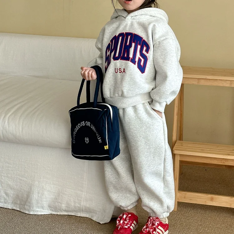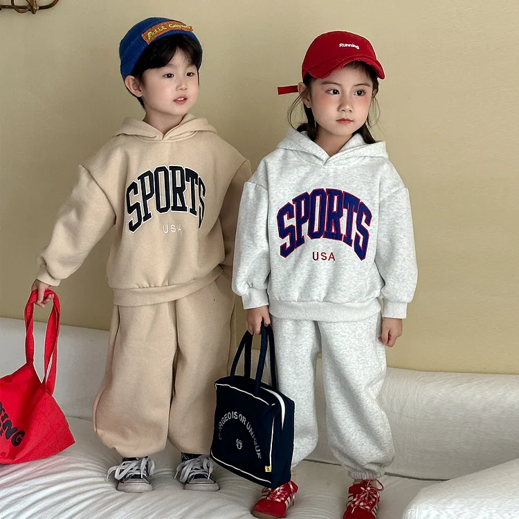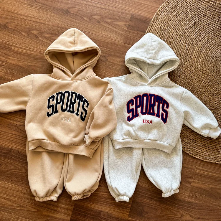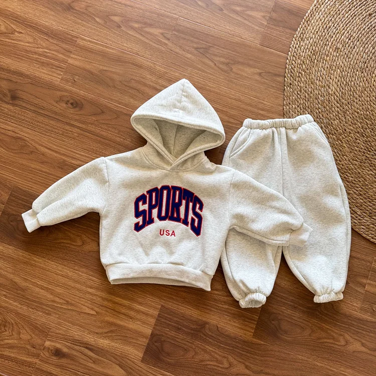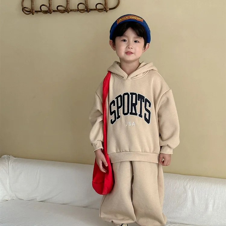 【80-150cm】 英字プリント ボア付き セットアップ